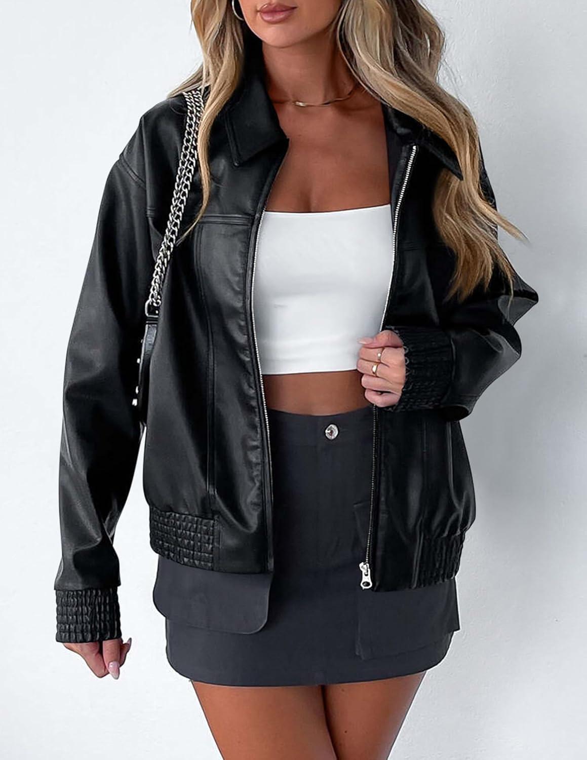 PRETTYGARDEN Women's Faux Leather Jackets 2025 Fall Long Sleeve Bomber Jacket Zip Up Motorcycle Coats Winter Clothes(Black)