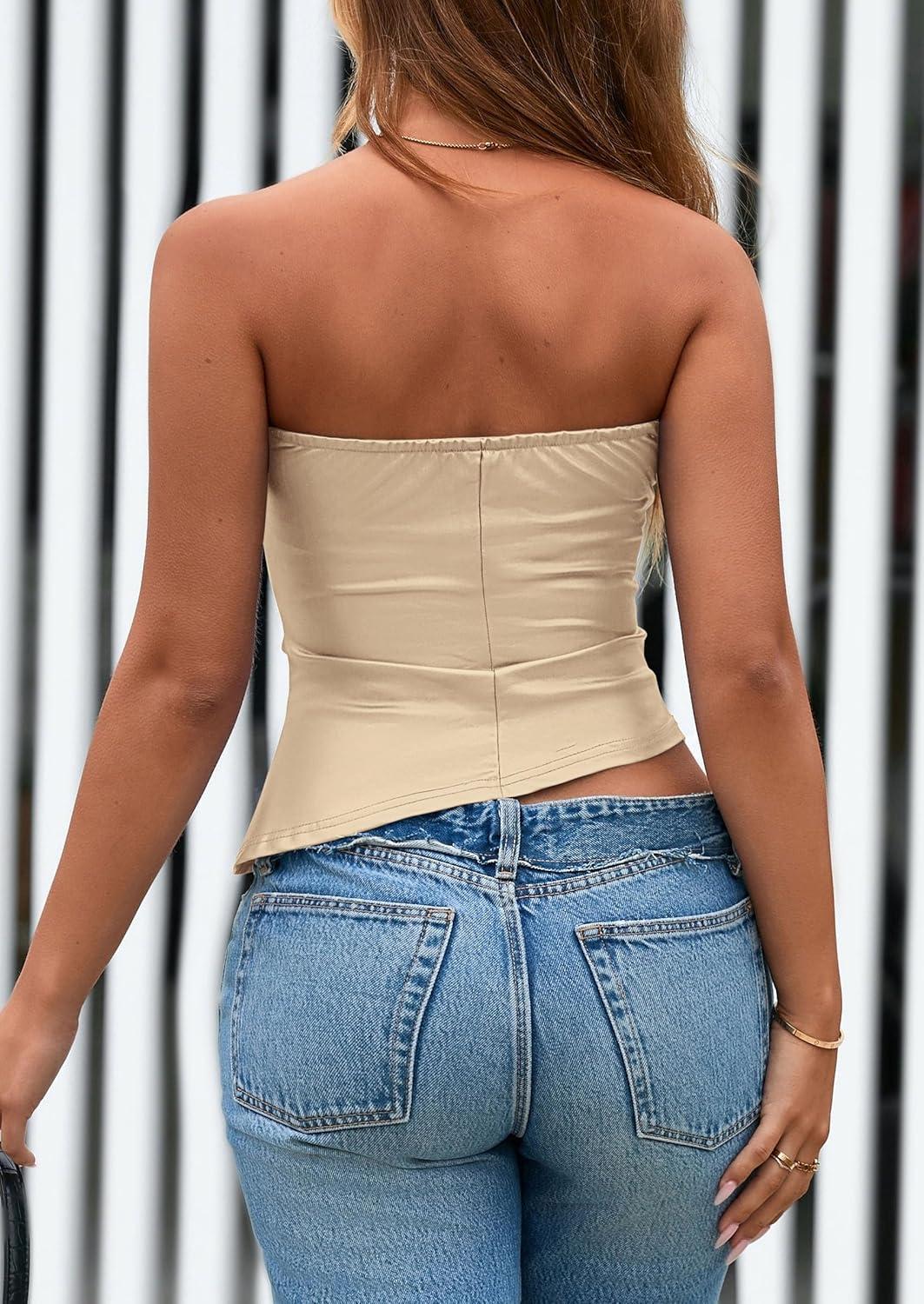 Be the first to review “PRETTYGARDEN Women’s Faux Leather Tube Tops 2025 Summer Strapless Asymmetrical Ruched Bandeau Shirts Going Out Club Outfits(Champagne)”