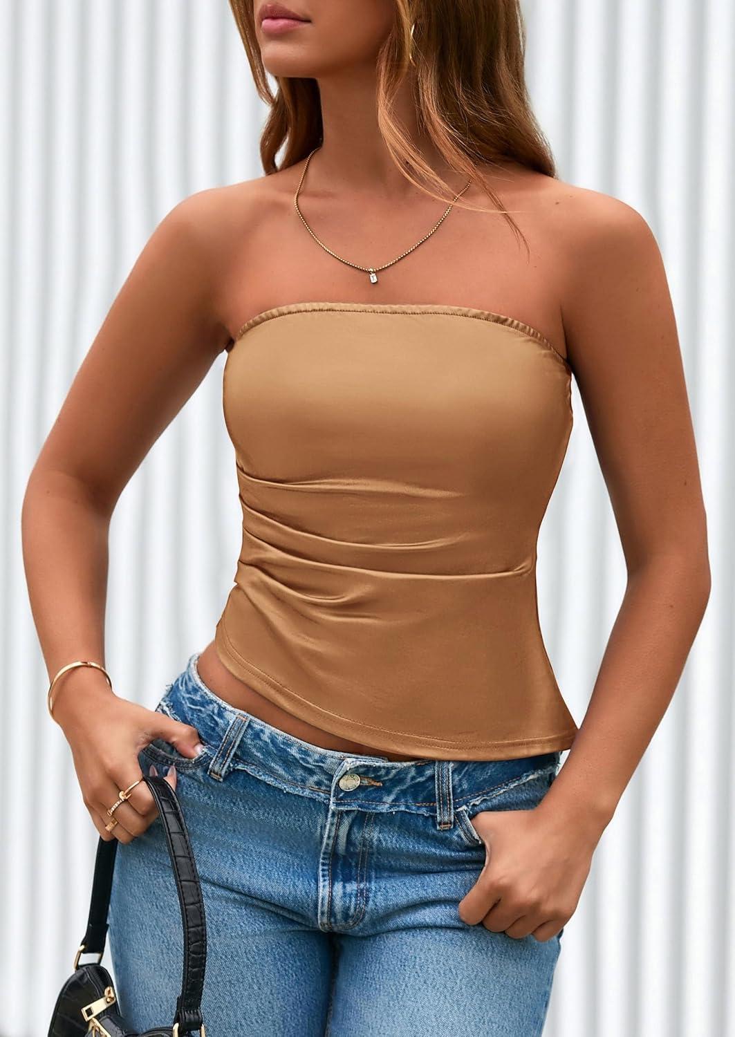 Be the first to review “PRETTYGARDEN Women’s Faux Leather Tube Tops 2025 Summer Strapless Asymmetrical Ruched Bandeau Shirts Going Out Club Outfits(Light Brown)”