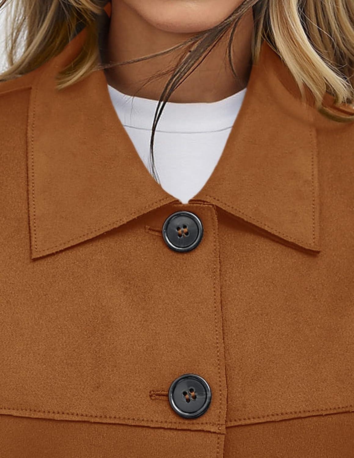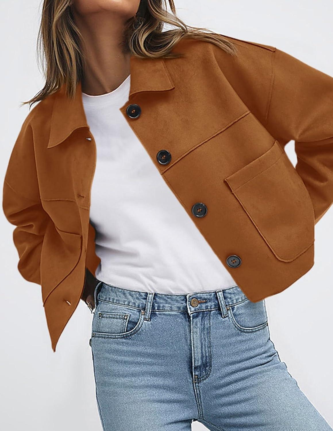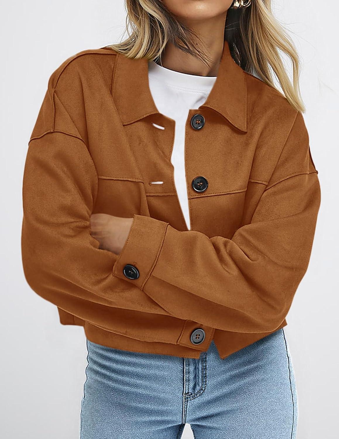 PRETTYGARDEN Women's Faux Suede Cropped Jacket Casual Lightweight Fall Fashion 2025 Winter Coats Outerwear Trendy Clothes(Brown)