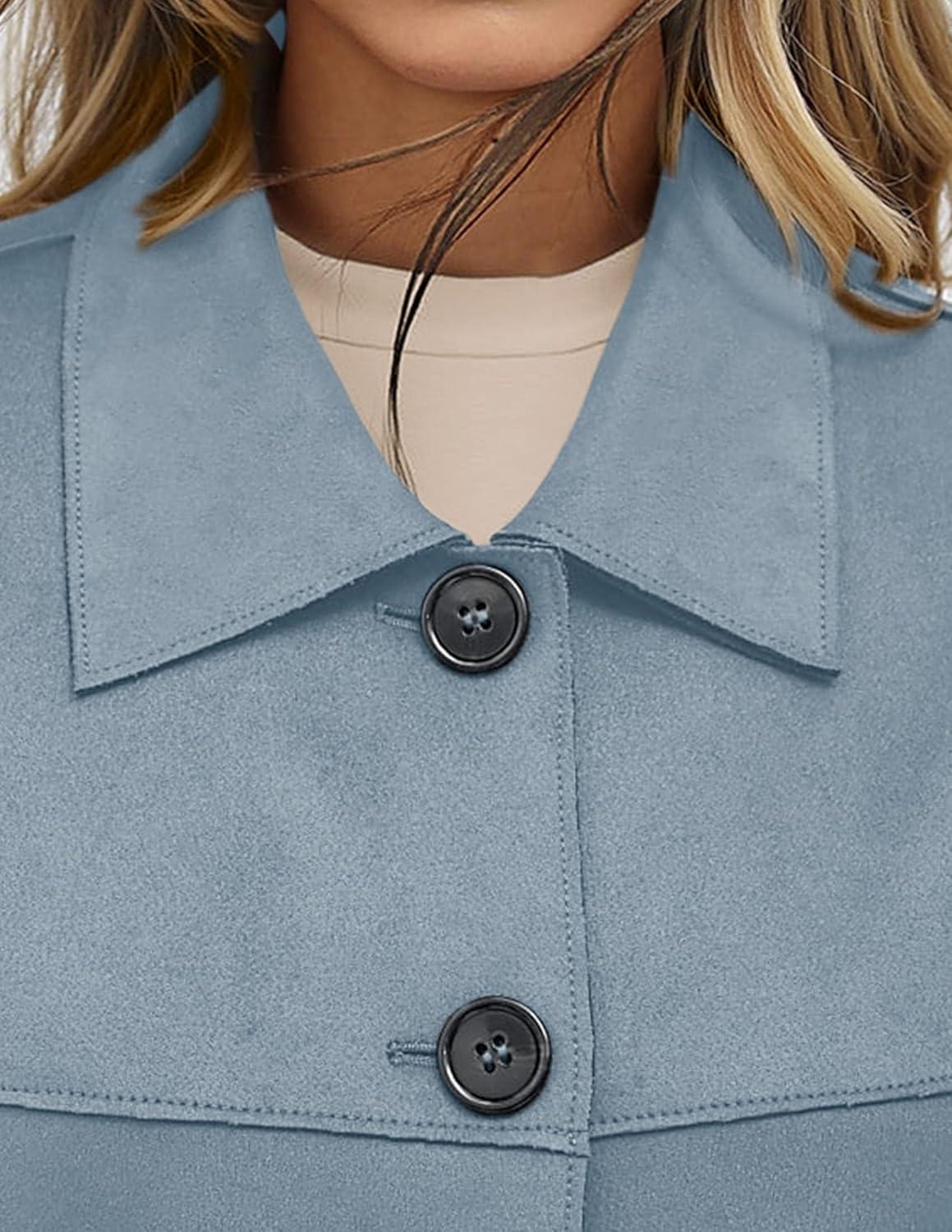 PRETTYGARDEN Women’s Faux Suede Cropped Jacket Casual Lightweight Fall Fashion 2025 Winter Coats Outerwear Trendy Clothes(Light Blue)