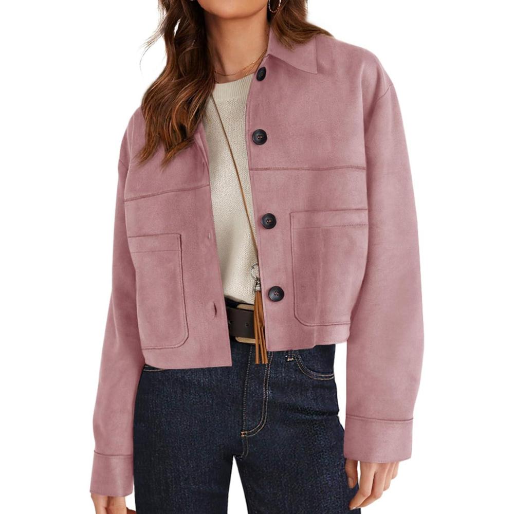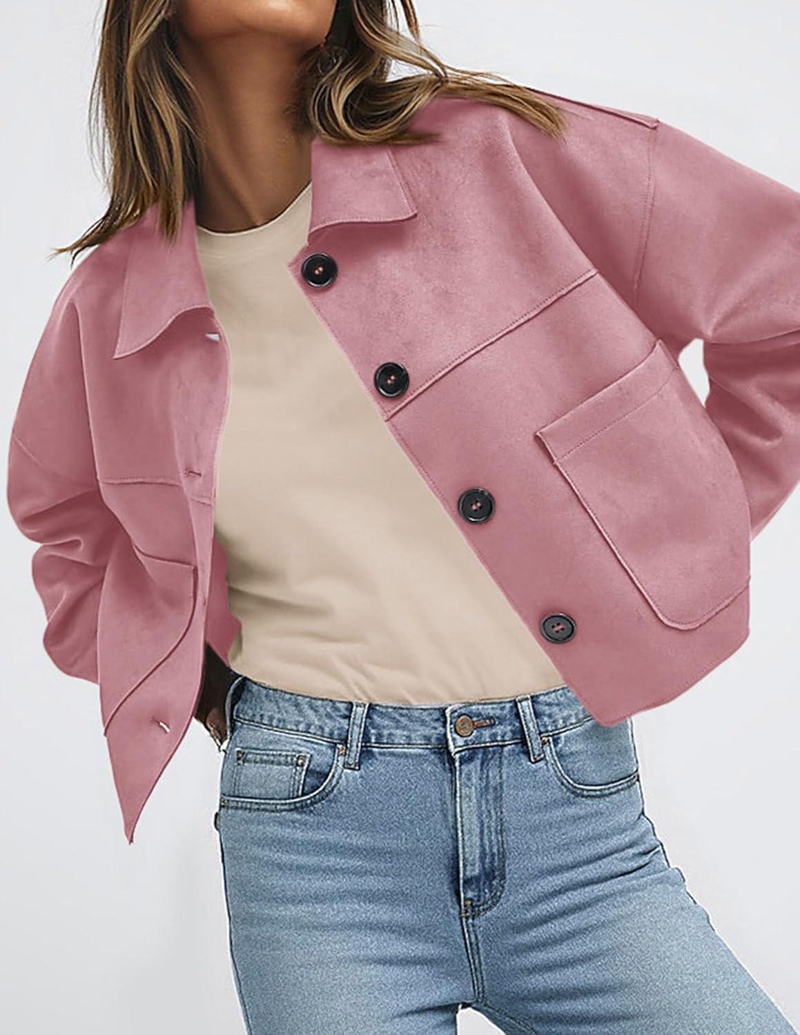 PRETTYGARDEN Women's Faux Suede Cropped Jacket Casual Lightweight Fall Fashion 2025 Winter Coats Outerwear Trendy Clothes(Pink)