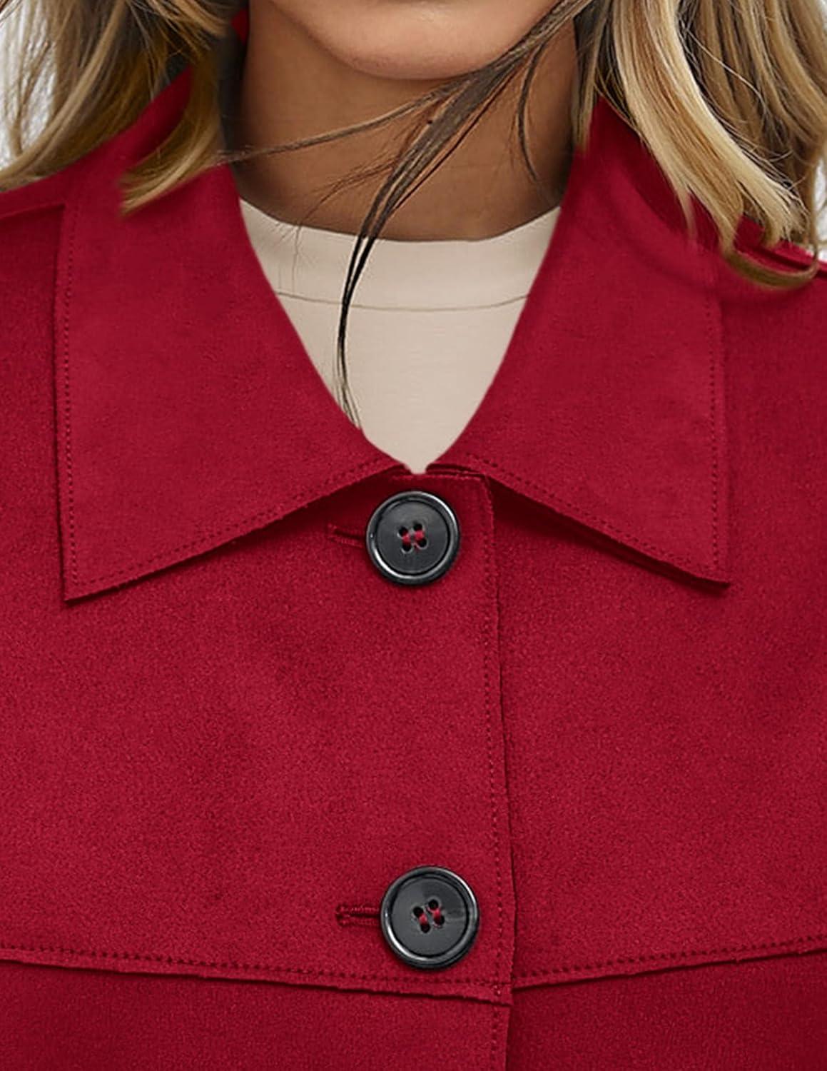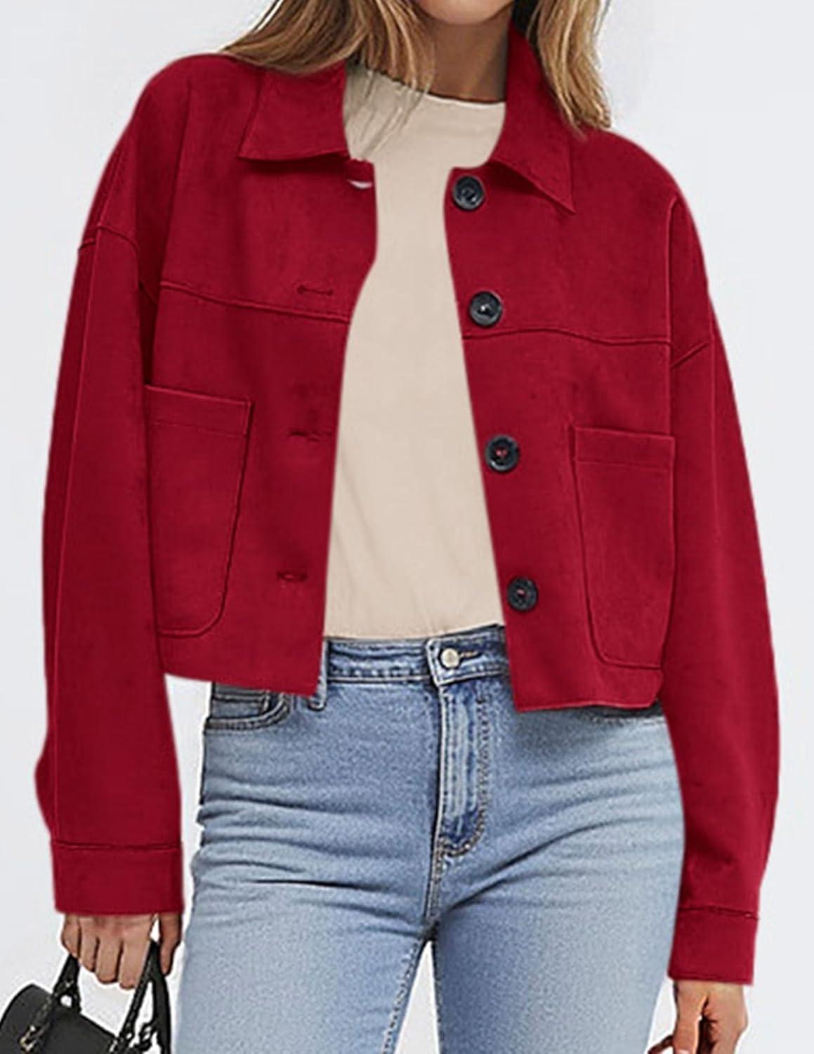 PRETTYGARDEN Women's Faux Suede Cropped Jacket Casual Lightweight Fall Fashion 2025 Winter Coats Outerwear Trendy Clothes(Red)