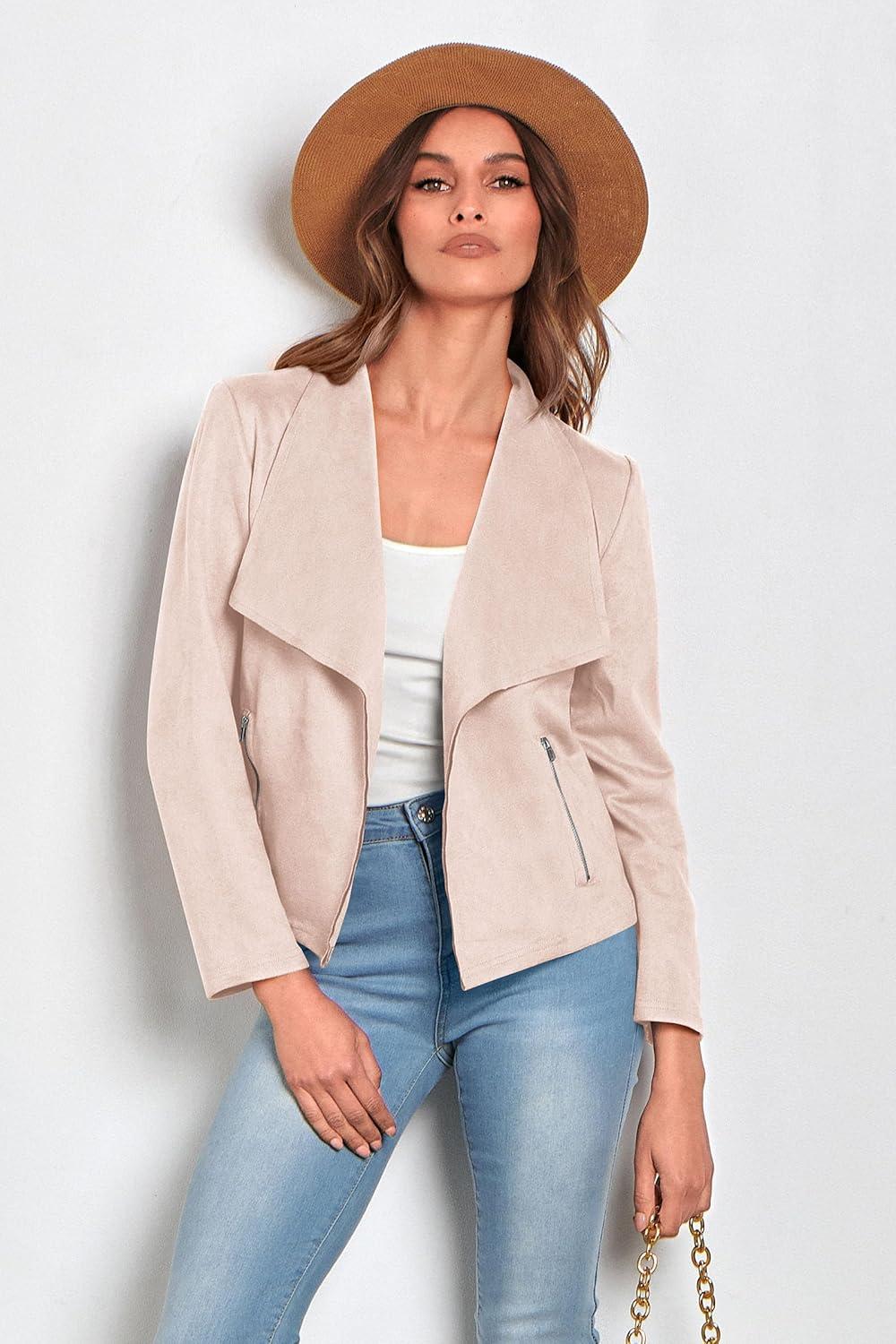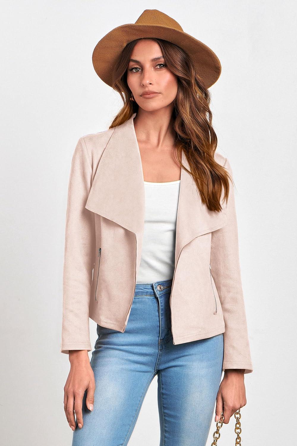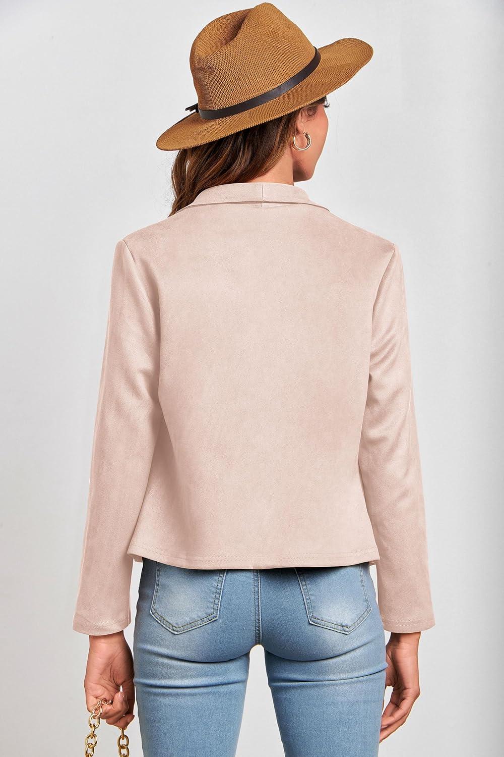 PRETTYGARDEN Women’s Faux Suede Jackets 2025 Fashion Fall Clothes Long Sleeve Open Front Cropped Coat Outwear(Beige Apricot)