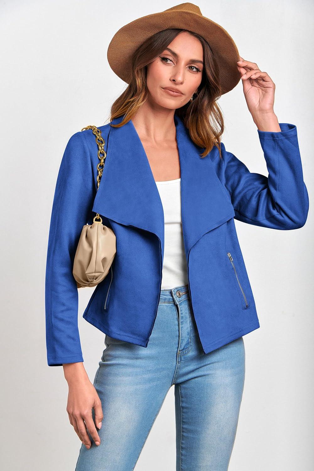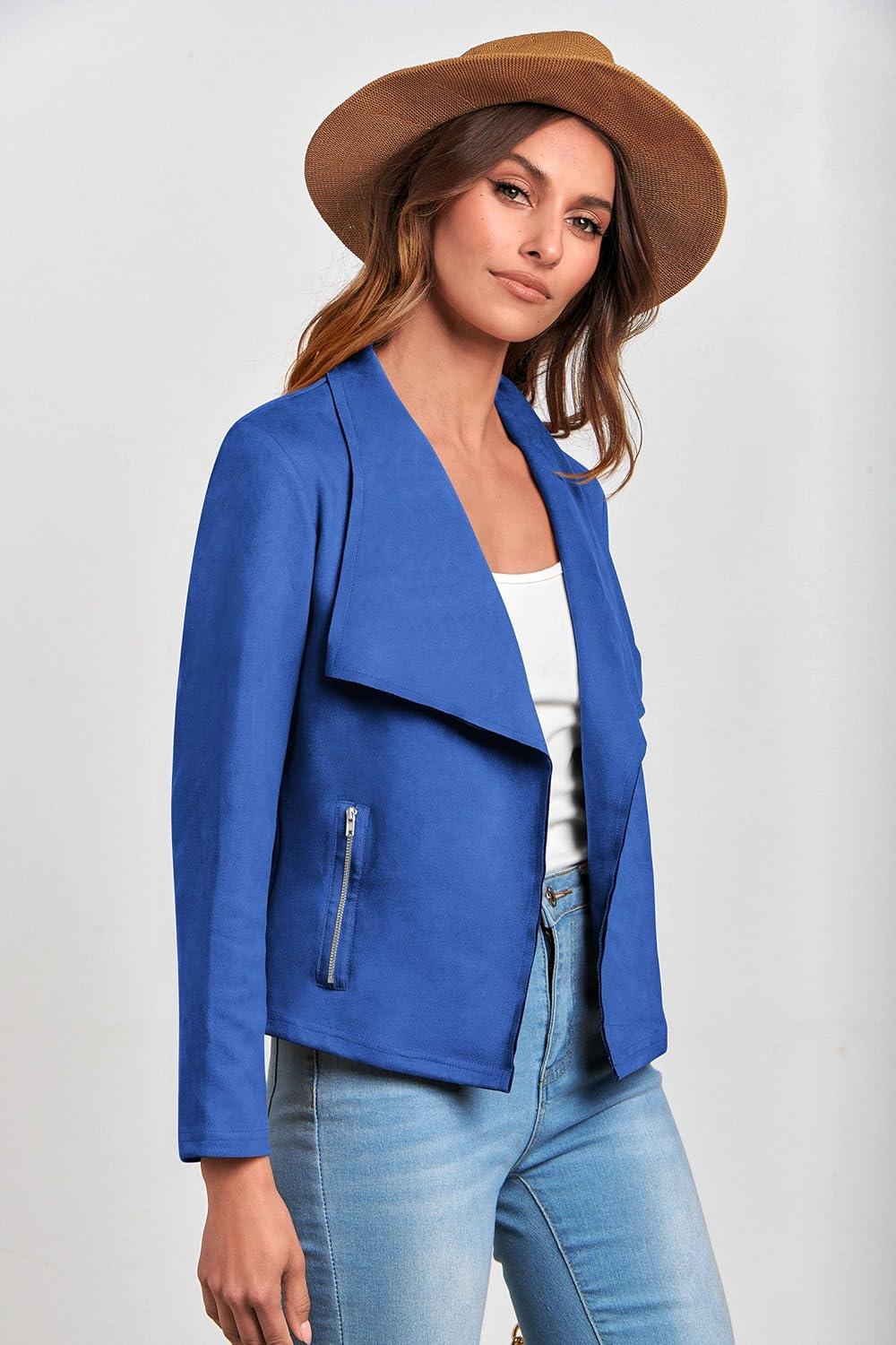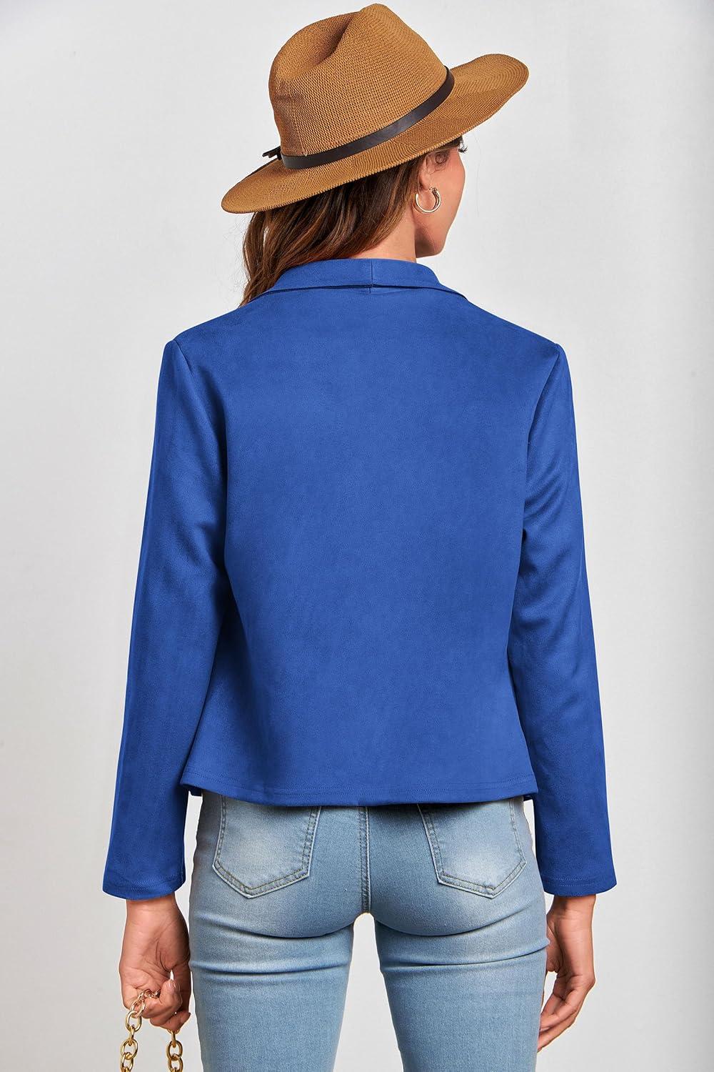 PRETTYGARDEN Women's Faux Suede Jackets 2025 Fashion Fall Clothes Long Sleeve Open Front Cropped Coat Outwear(Blue)