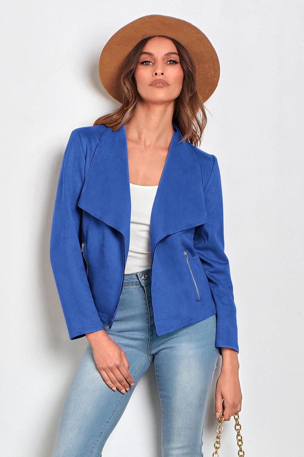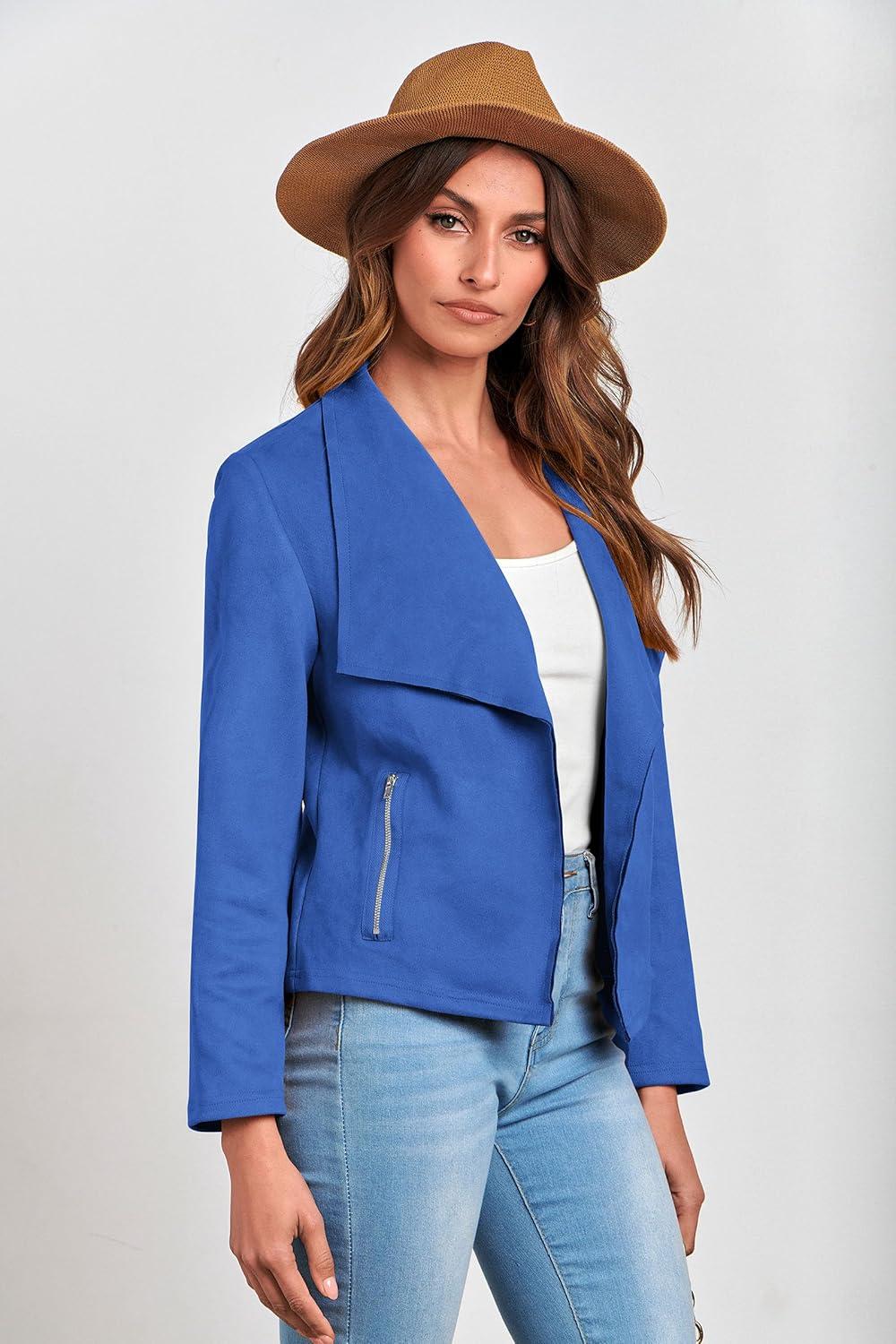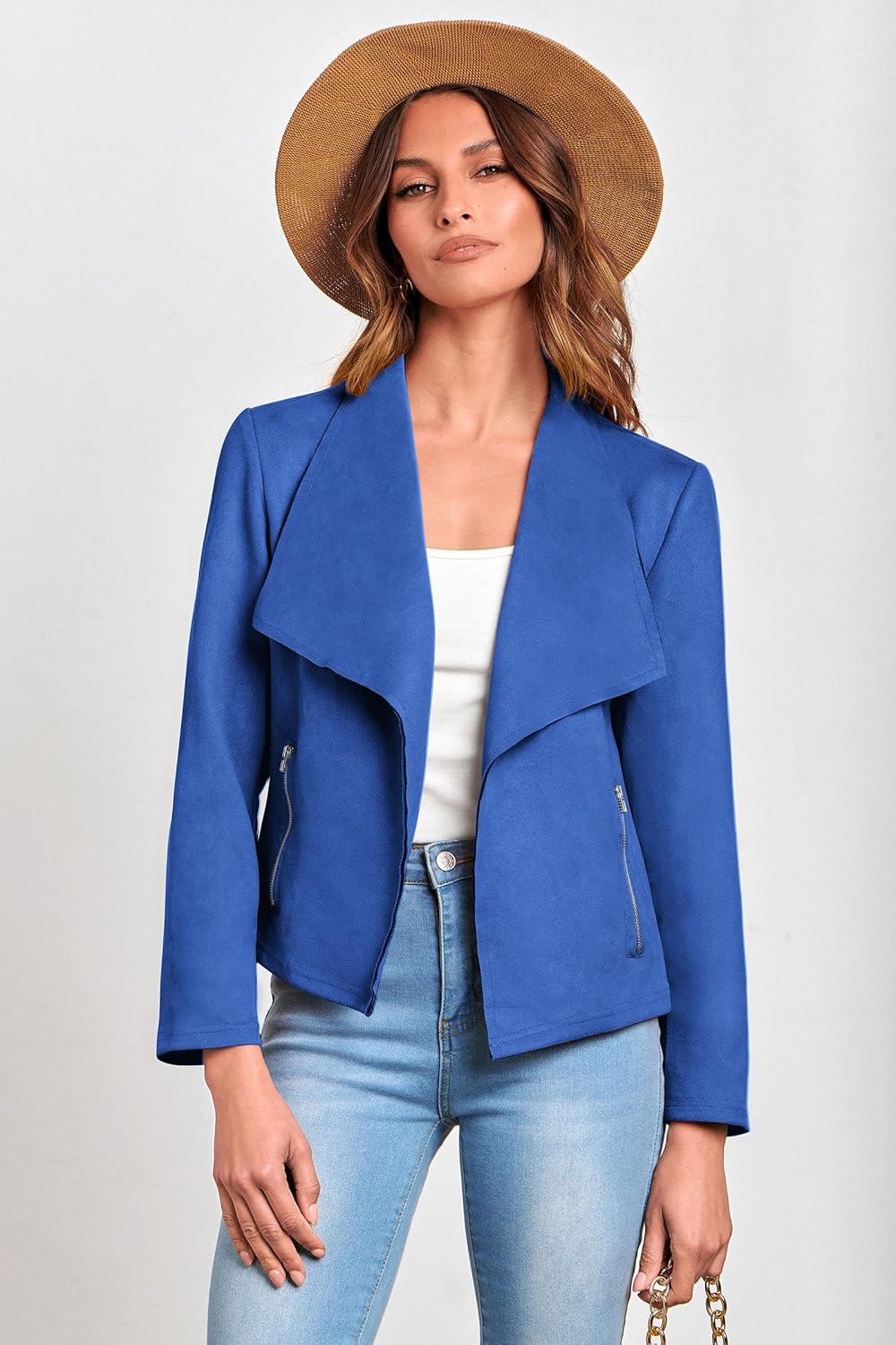 PRETTYGARDEN Women's Faux Suede Jackets 2025 Fashion Fall Clothes Long Sleeve Open Front Cropped Coat Outwear(Blue)