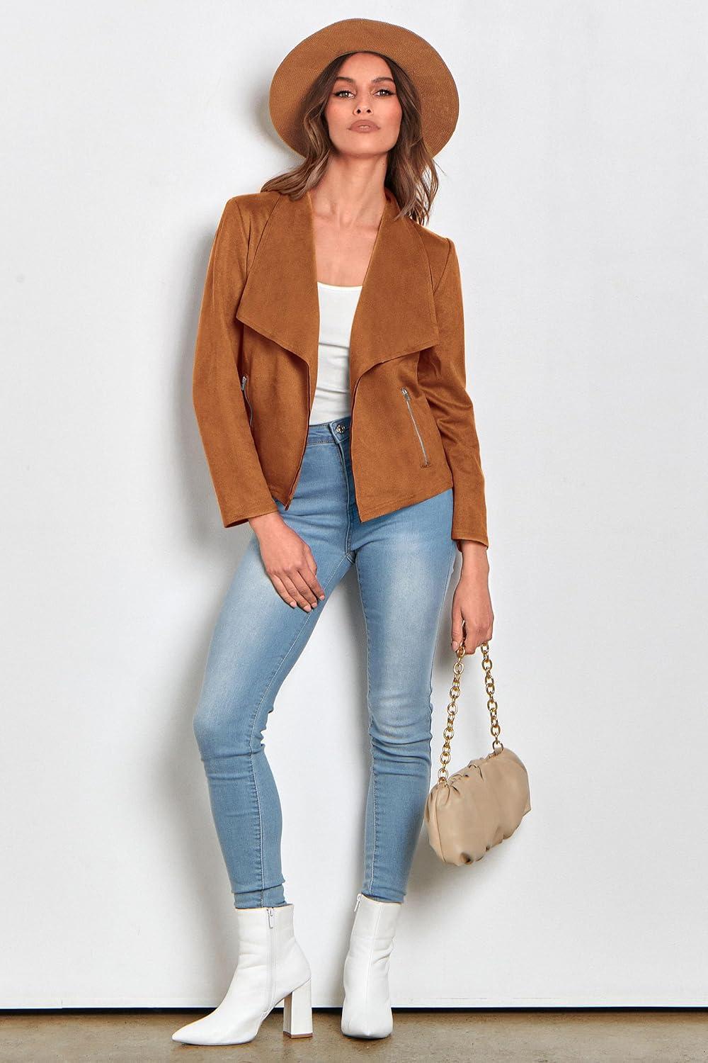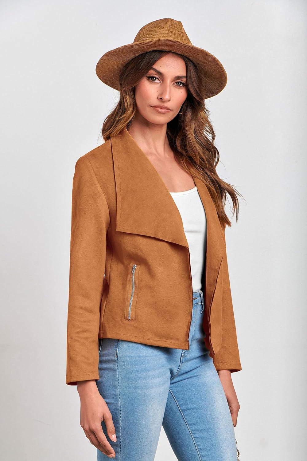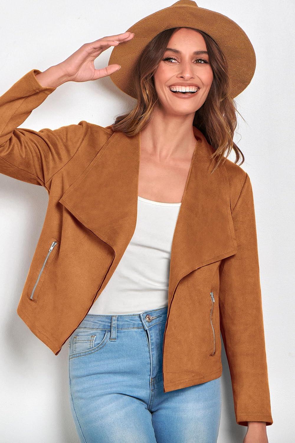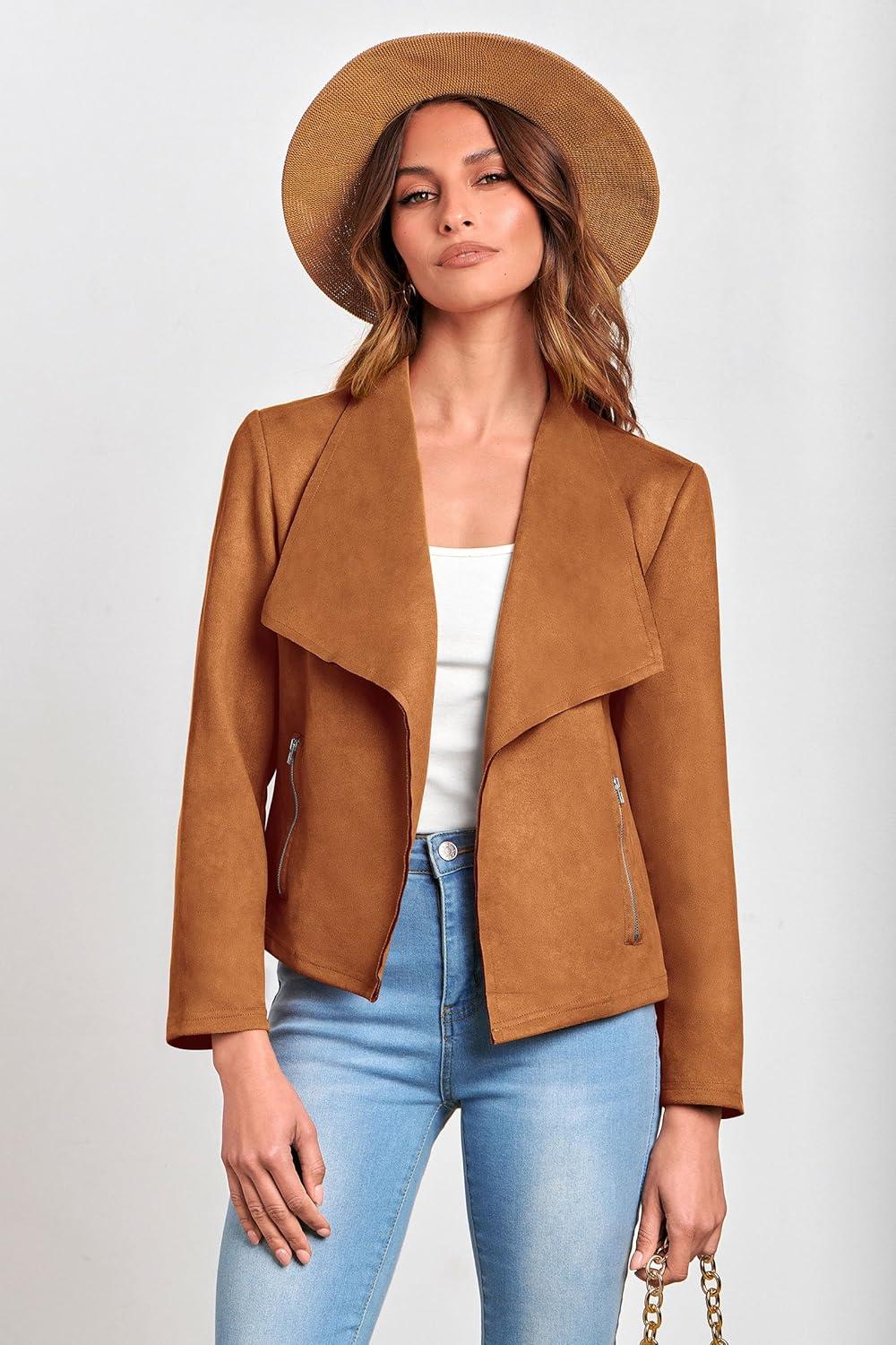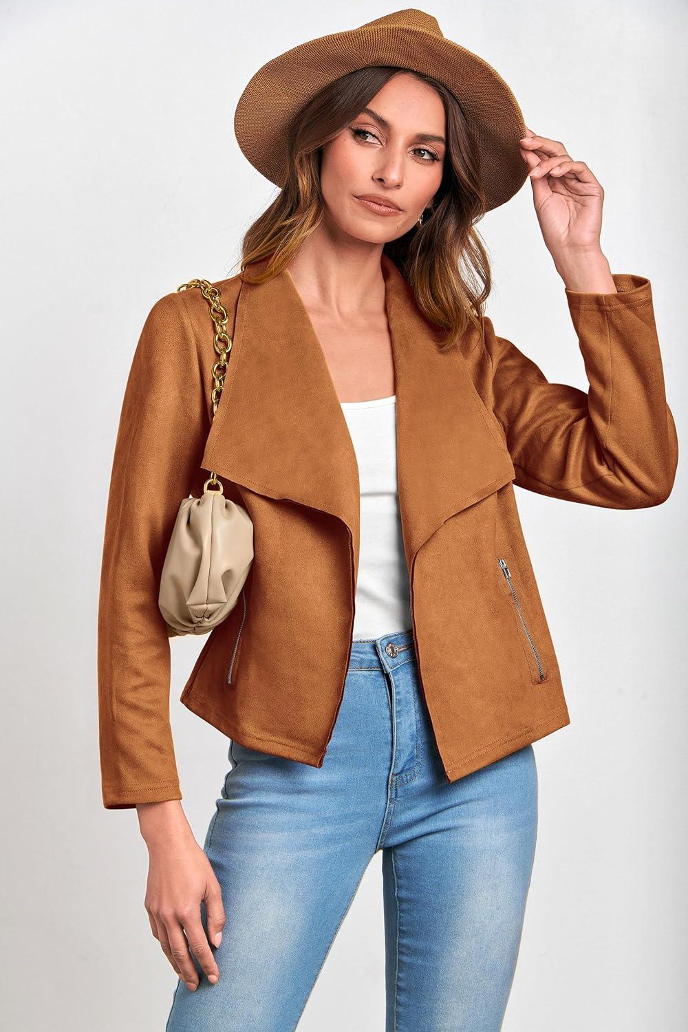 PRETTYGARDEN Women’s Faux Suede Jackets 2025 Fashion Fall Clothes Long Sleeve Open Front Cropped Coat Outwear(Camel)