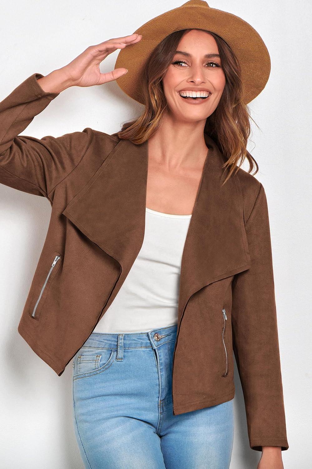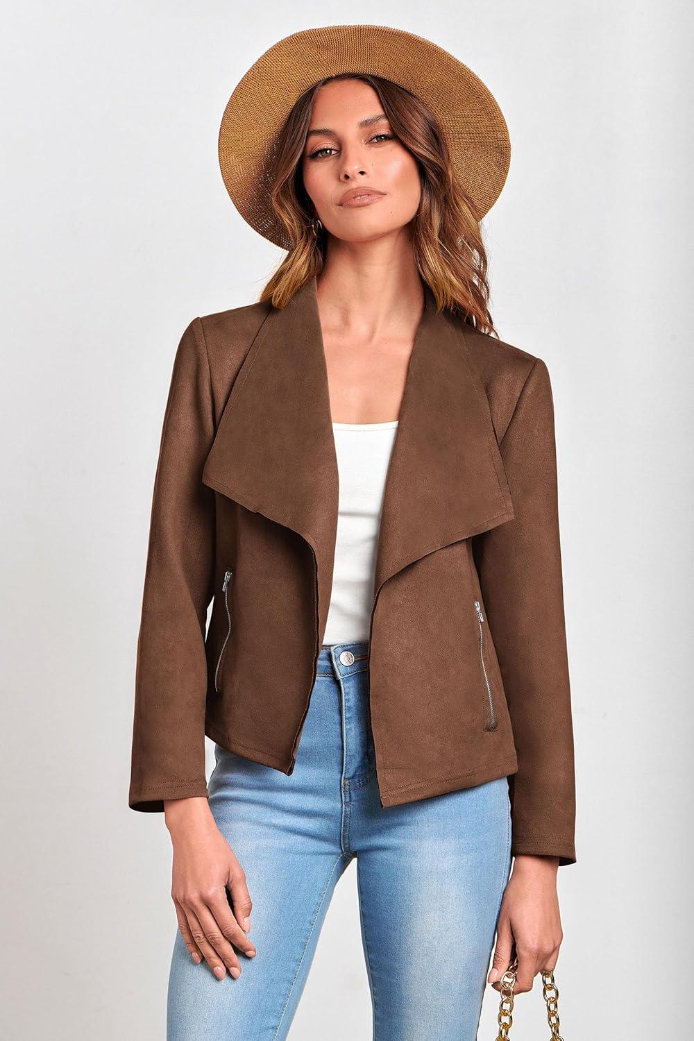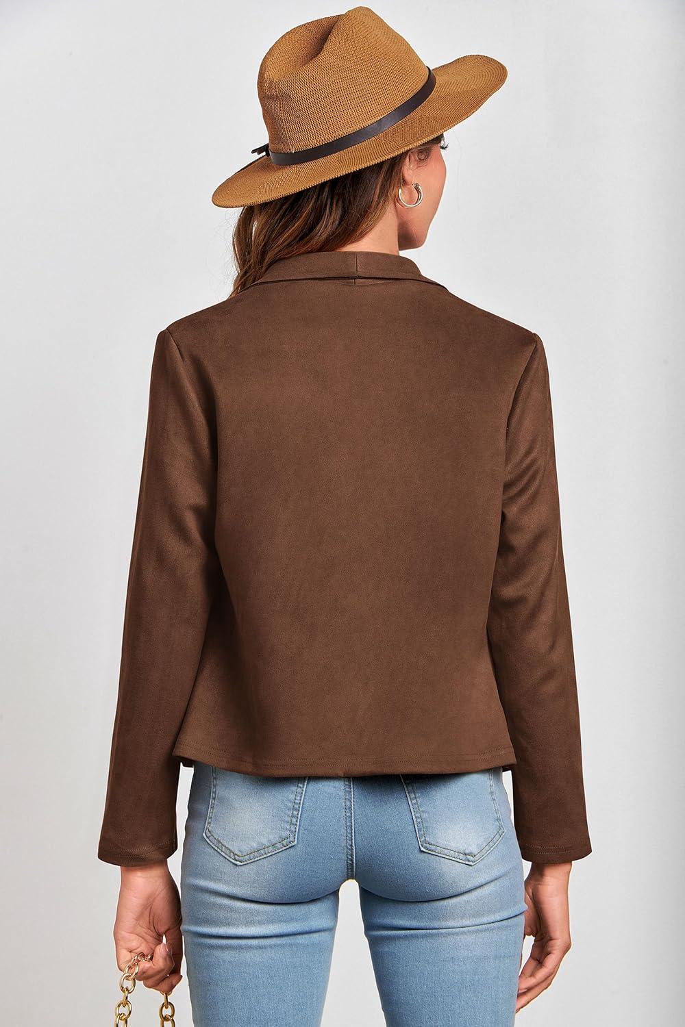 PRETTYGARDEN Women's Faux Suede Jackets 2025 Fashion Fall Clothes Long Sleeve Open Front Cropped Coat Outwear(Coffee)