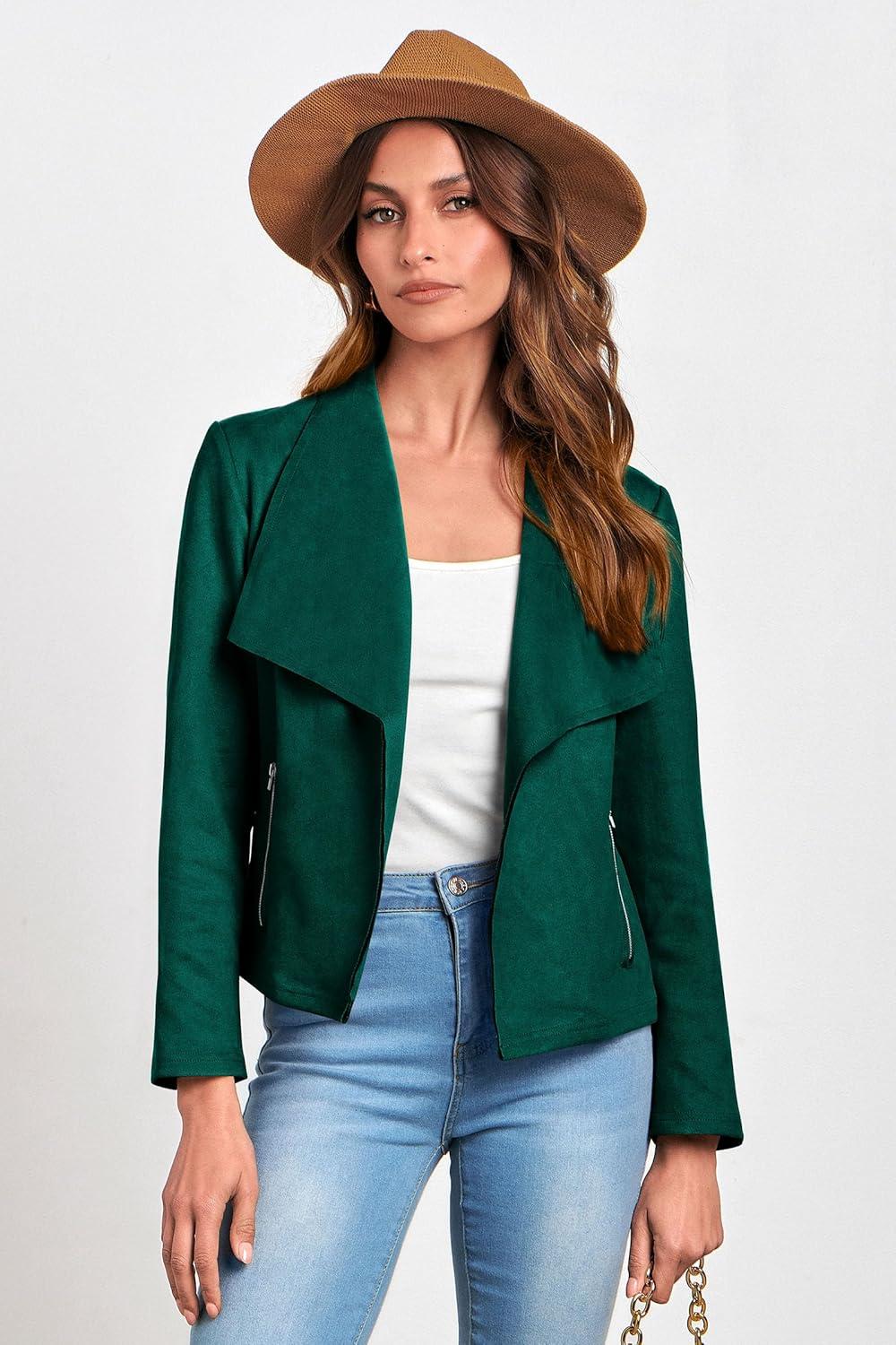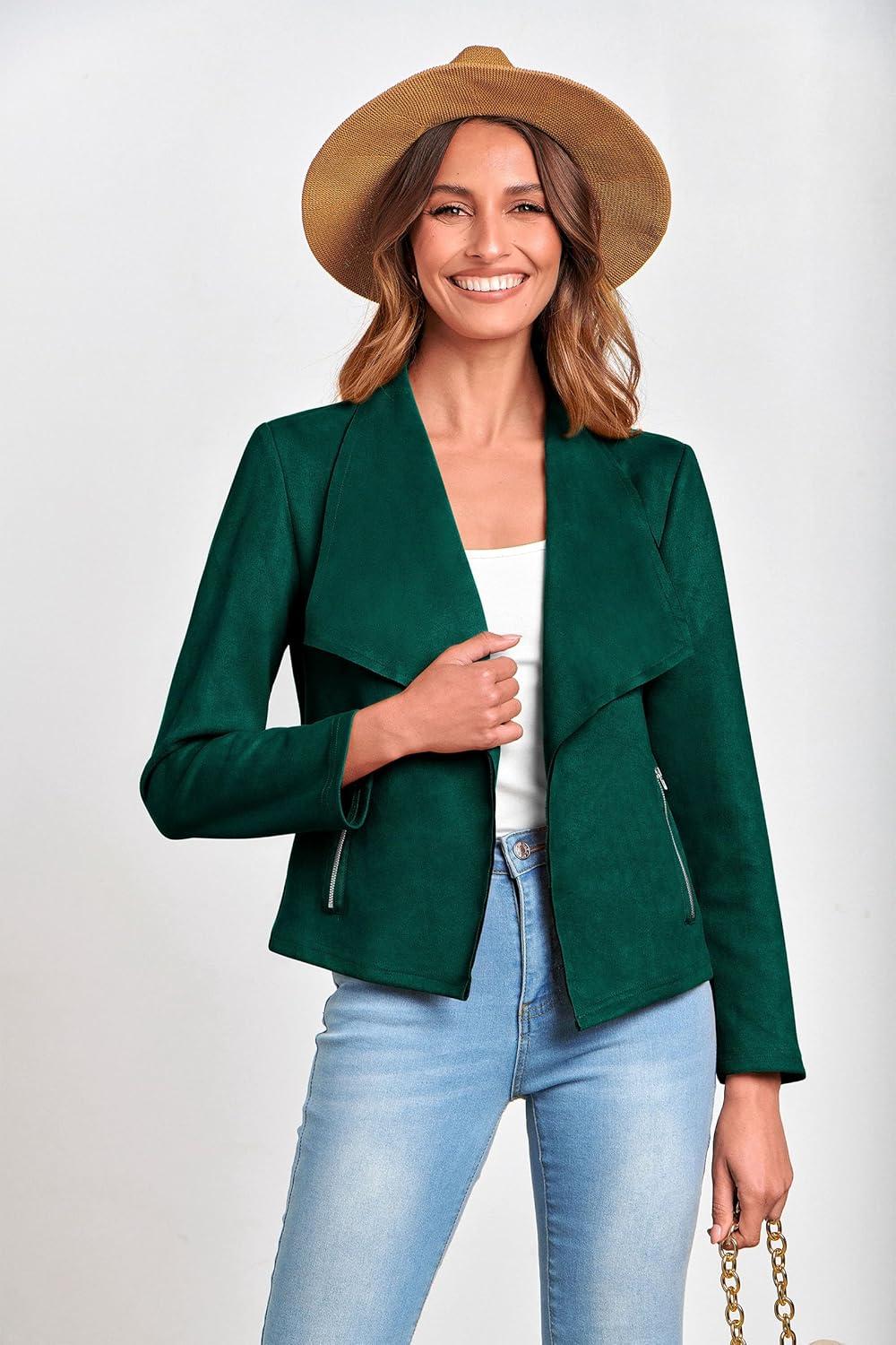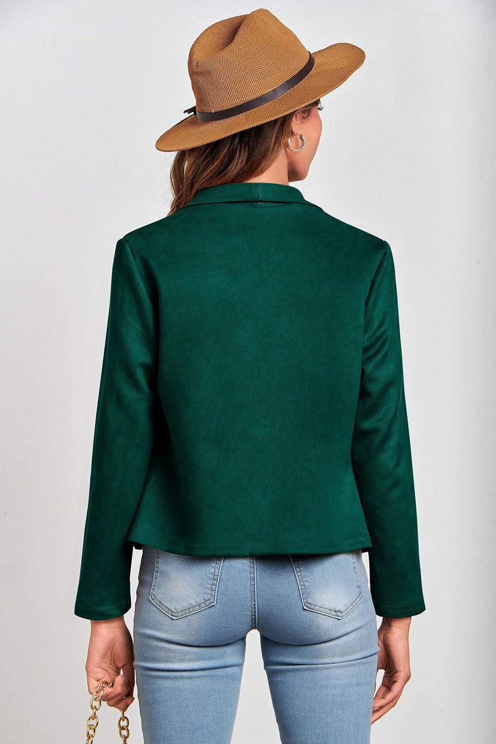 PRETTYGARDEN Women's Faux Suede Jackets 2025 Fashion Fall Clothes Long Sleeve Open Front Cropped Coat Outwear(Dark Green)