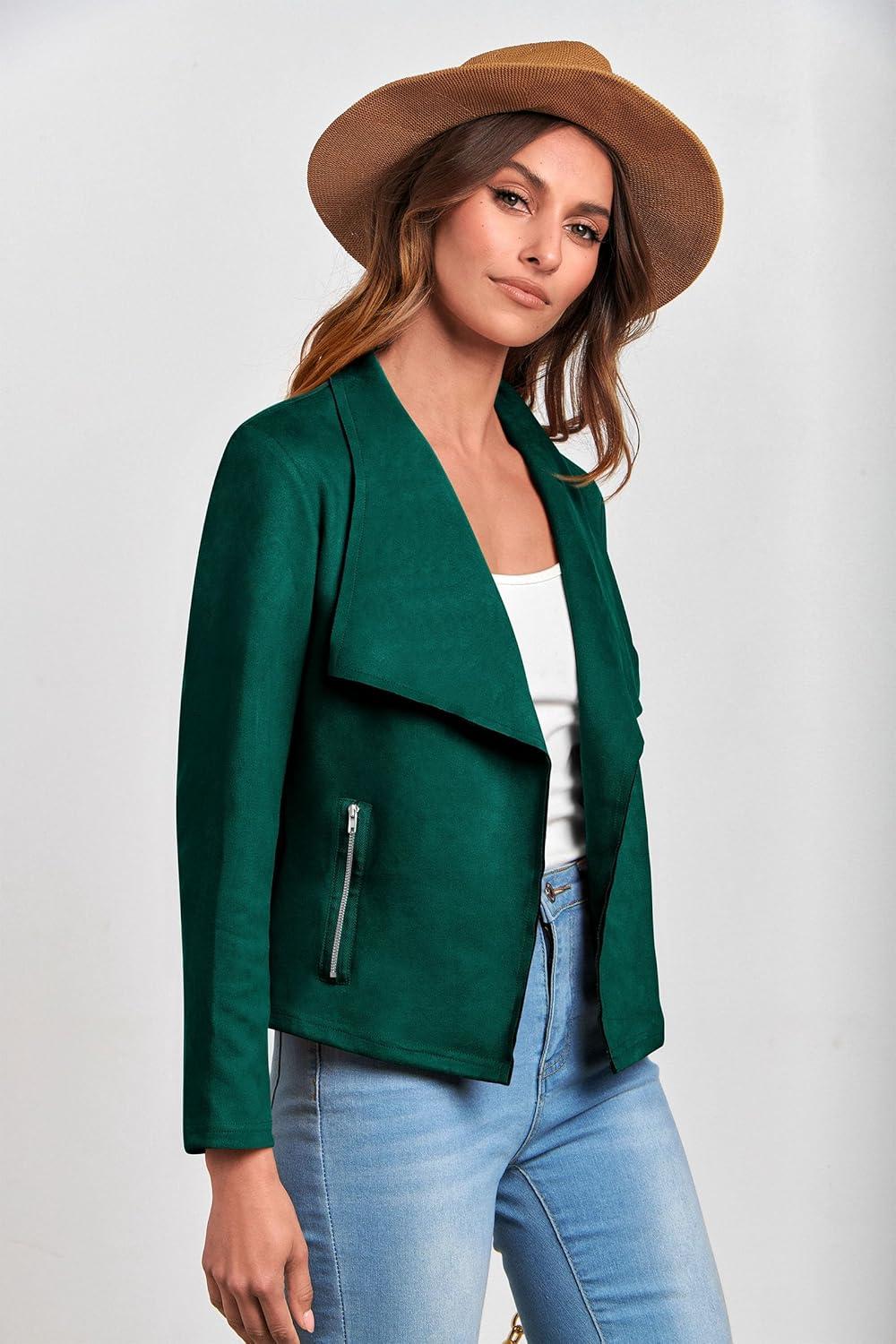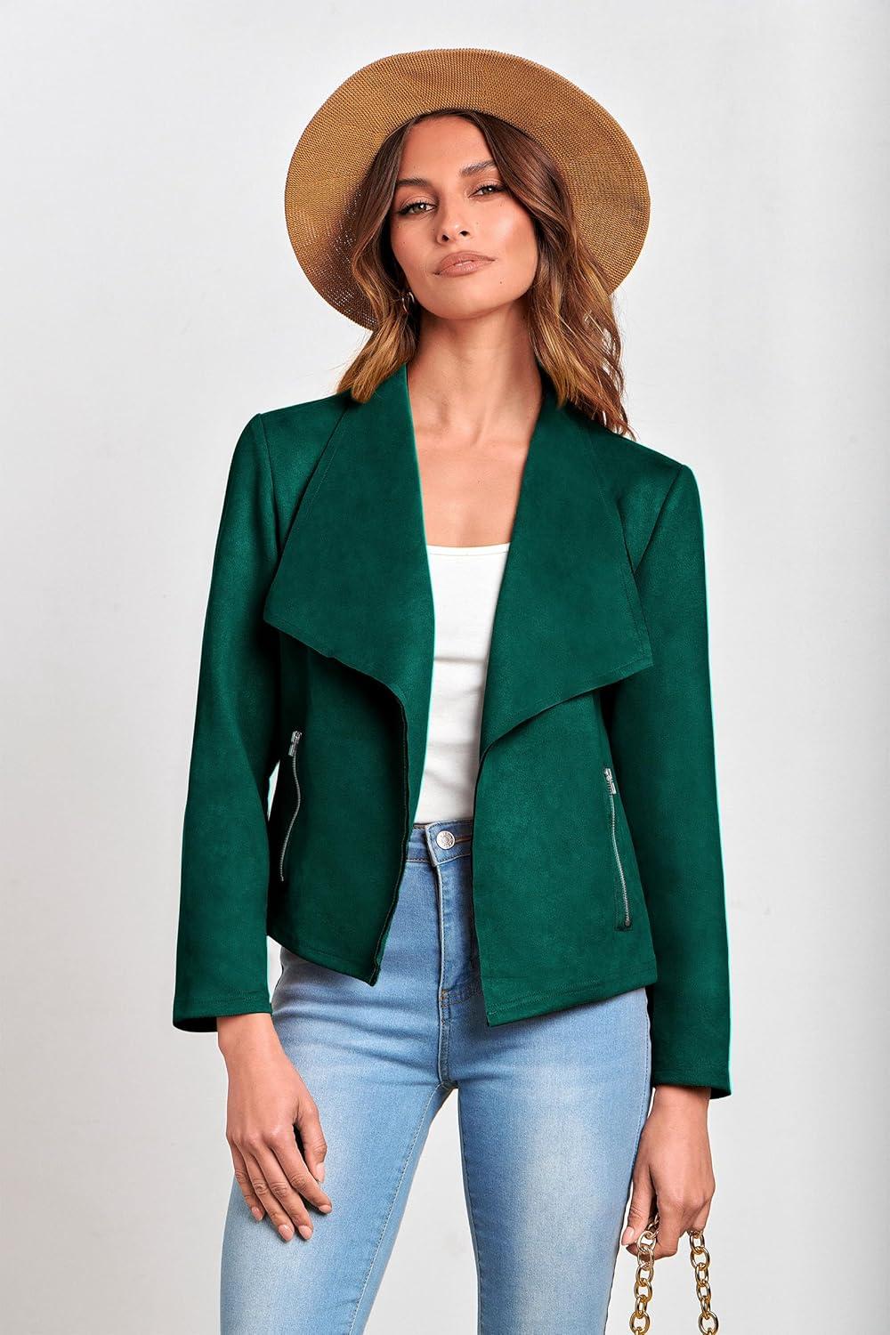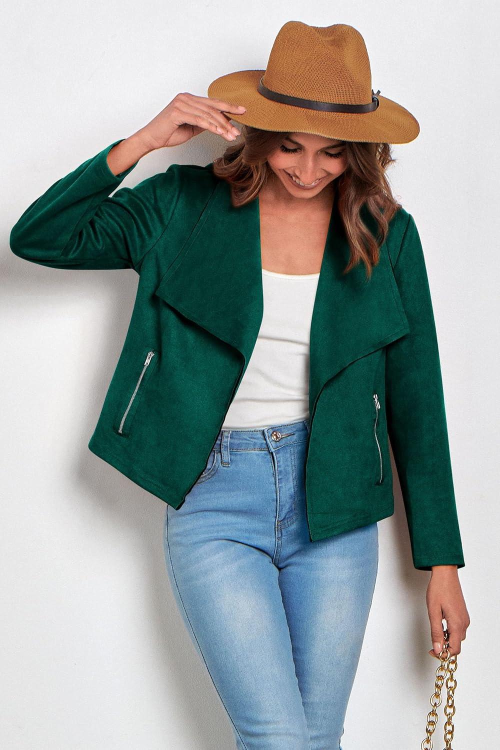 PRETTYGARDEN Women's Faux Suede Jackets 2025 Fashion Fall Clothes Long Sleeve Open Front Cropped Coat Outwear(Dark Green)