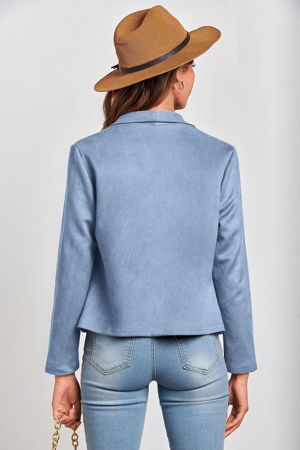 PRETTYGARDEN Women's Faux Suede Jackets 2025 Fashion Fall Clothes Long Sleeve Open Front Cropped Coat Outwear(Light Blue)