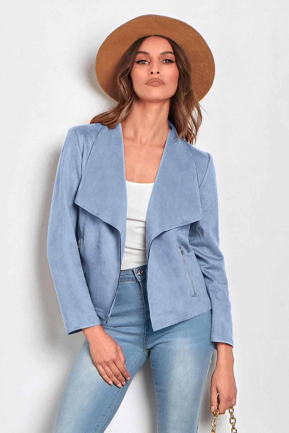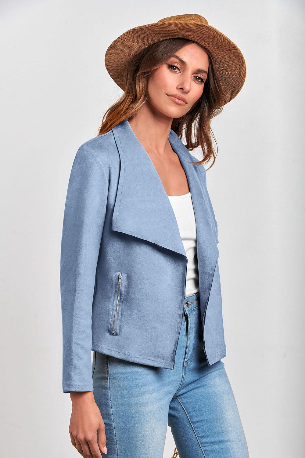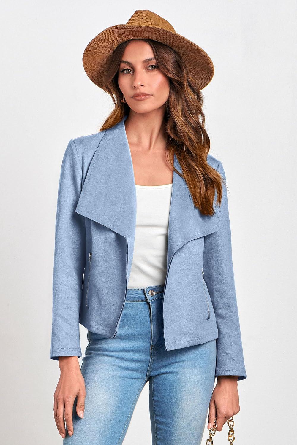 PRETTYGARDEN Women’s Faux Suede Jackets 2025 Fashion Fall Clothes Long Sleeve Open Front Cropped Coat Outwear(Light Blue)