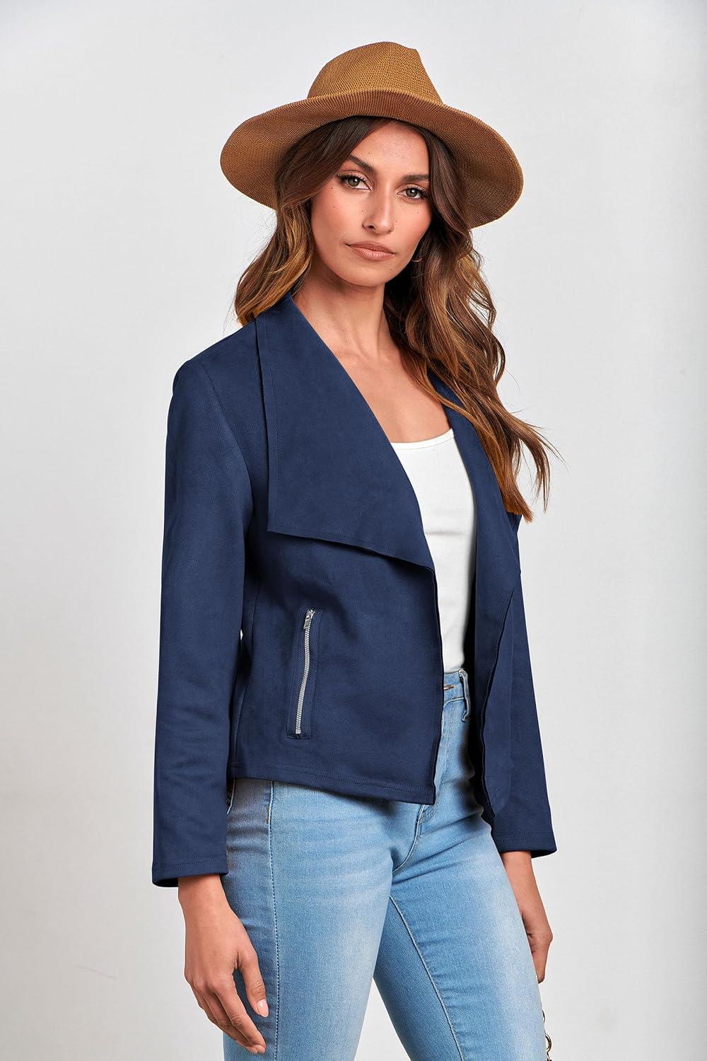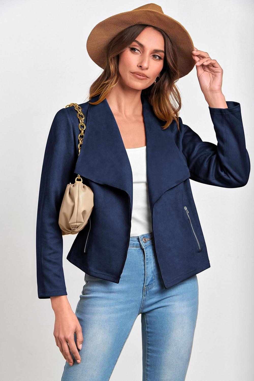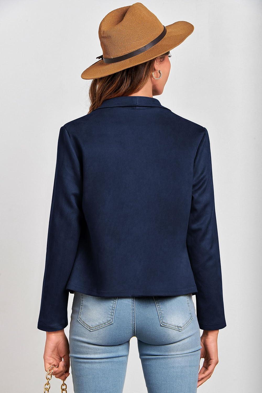 PRETTYGARDEN Women’s Faux Suede Jackets 2025 Fashion Fall Clothes Long Sleeve Open Front Cropped Coat Outwear(Navy)