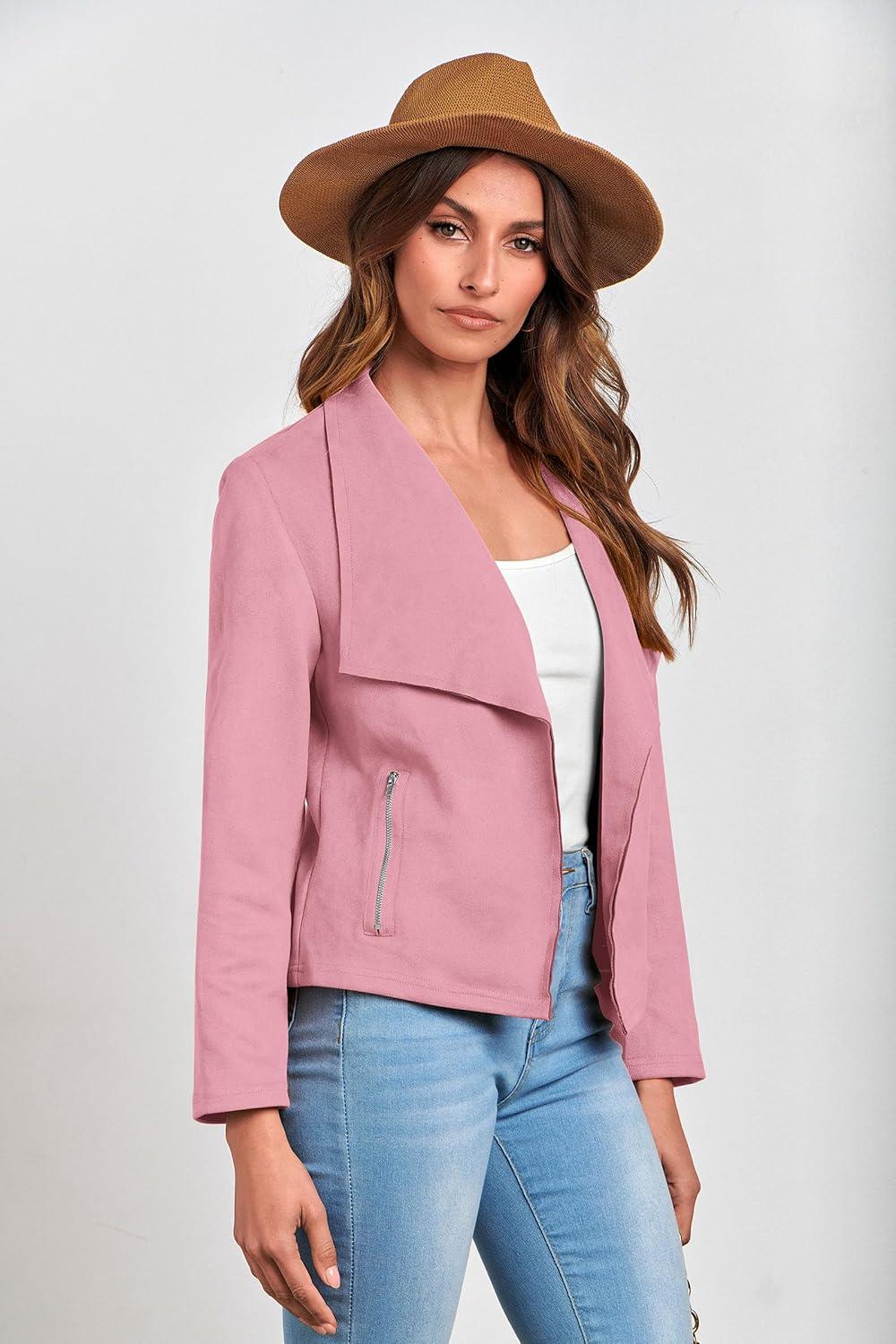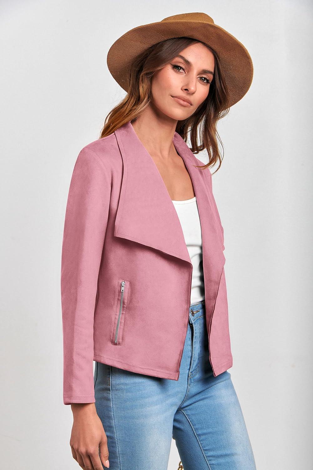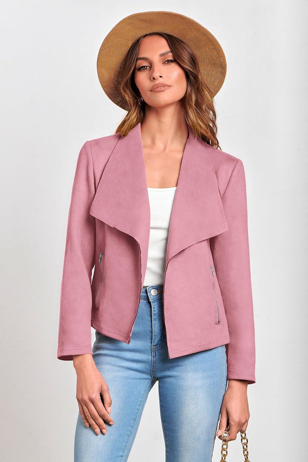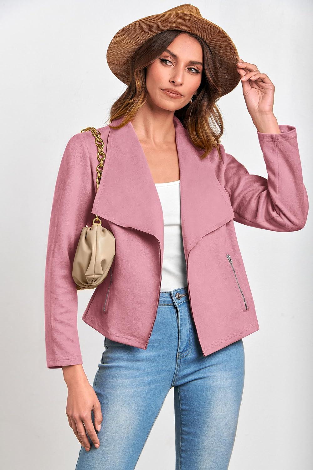 PRETTYGARDEN Women’s Faux Suede Jackets 2025 Fashion Fall Clothes Long Sleeve Open Front Cropped Coat Outwear(Pink)