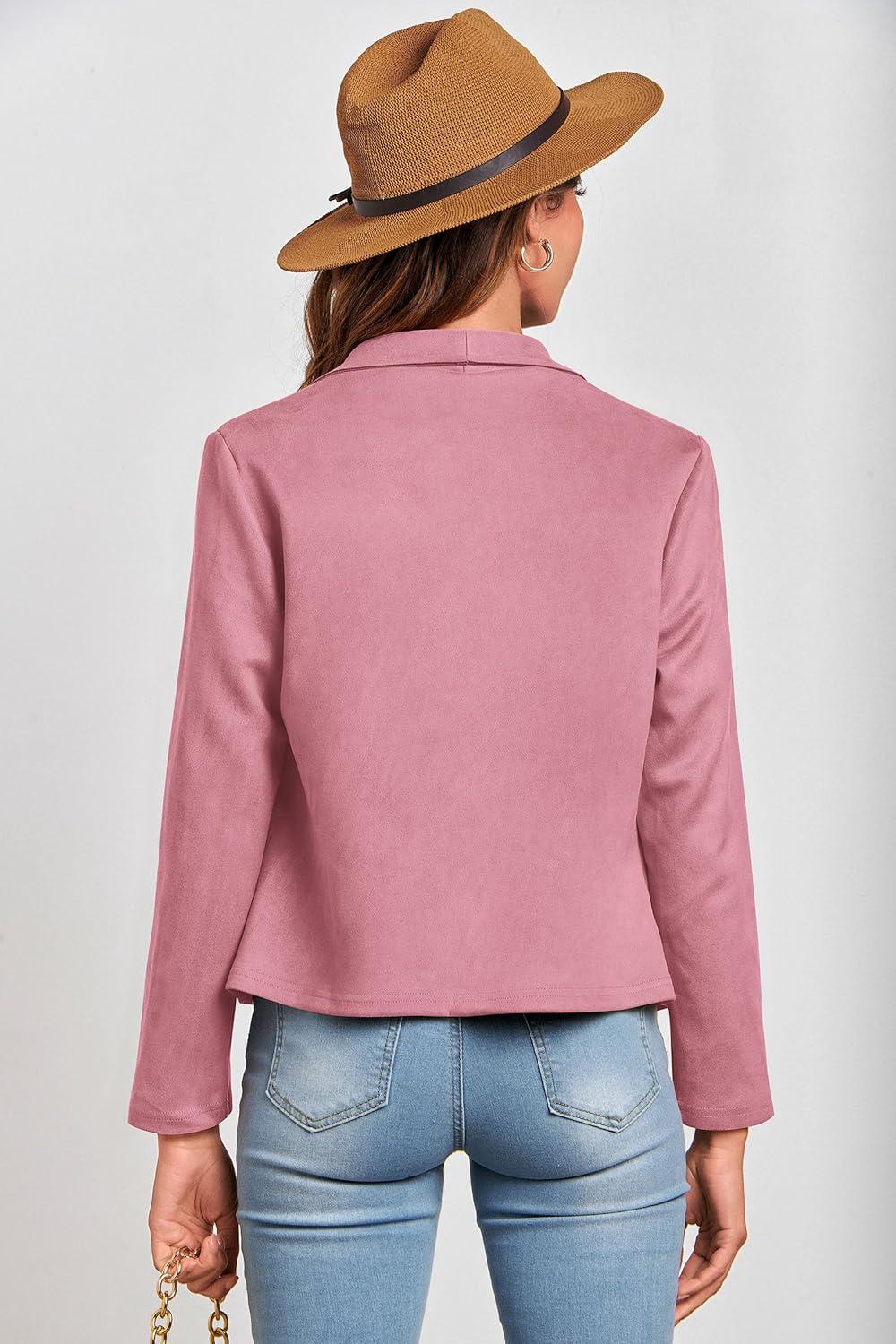 PRETTYGARDEN Women's Faux Suede Jackets 2025 Fashion Fall Clothes Long Sleeve Open Front Cropped Coat Outwear(Pink)