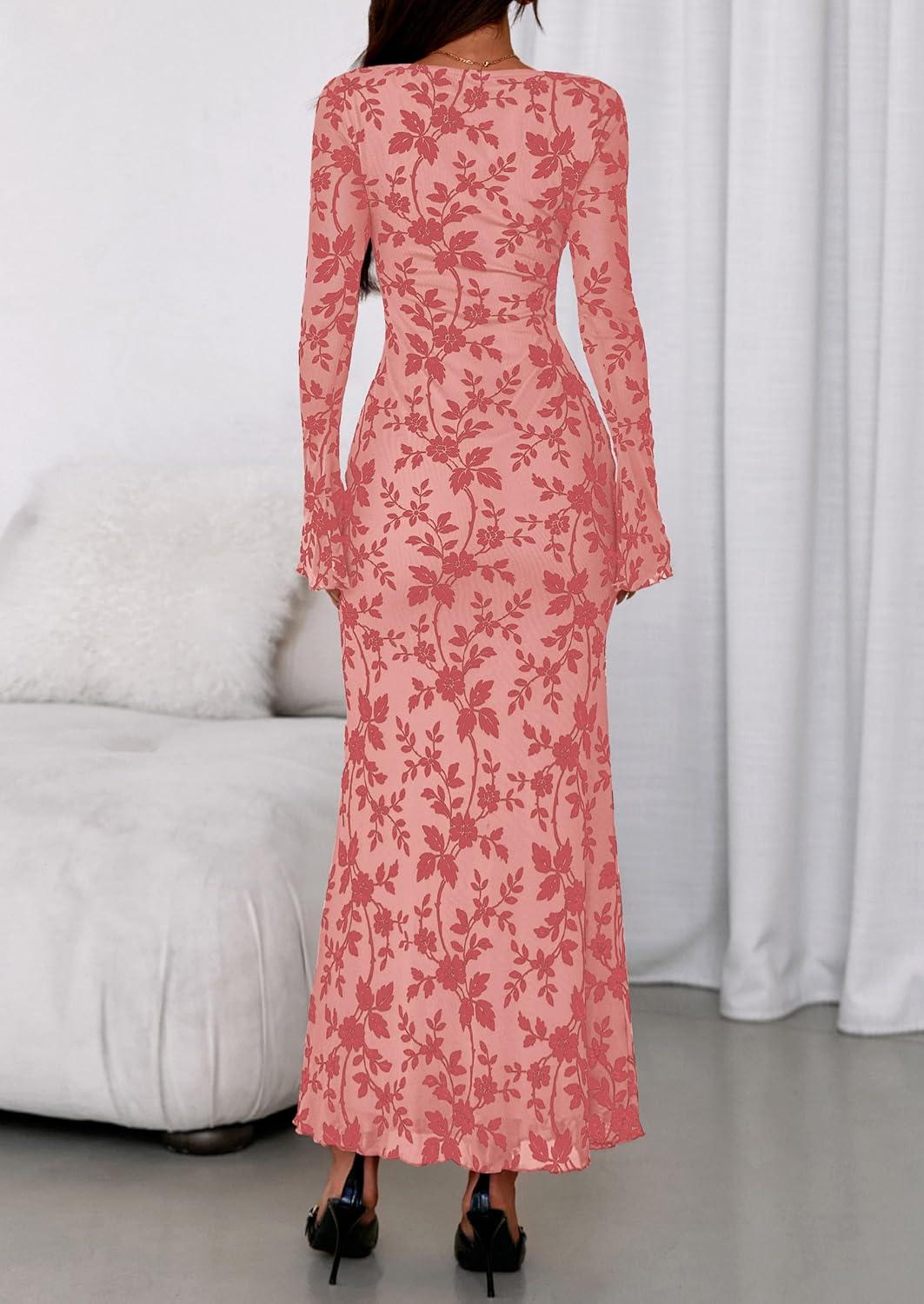 Be the first to review “PRETTYGARDEN Women’s Floral Bodycon Maxi Dress 2025 Fall Elegant Mesh Long Sleeve Formal Wedding Guest Cocktail Dresses(Pink)”