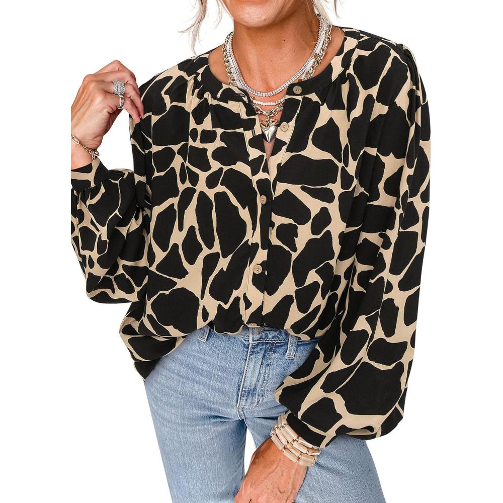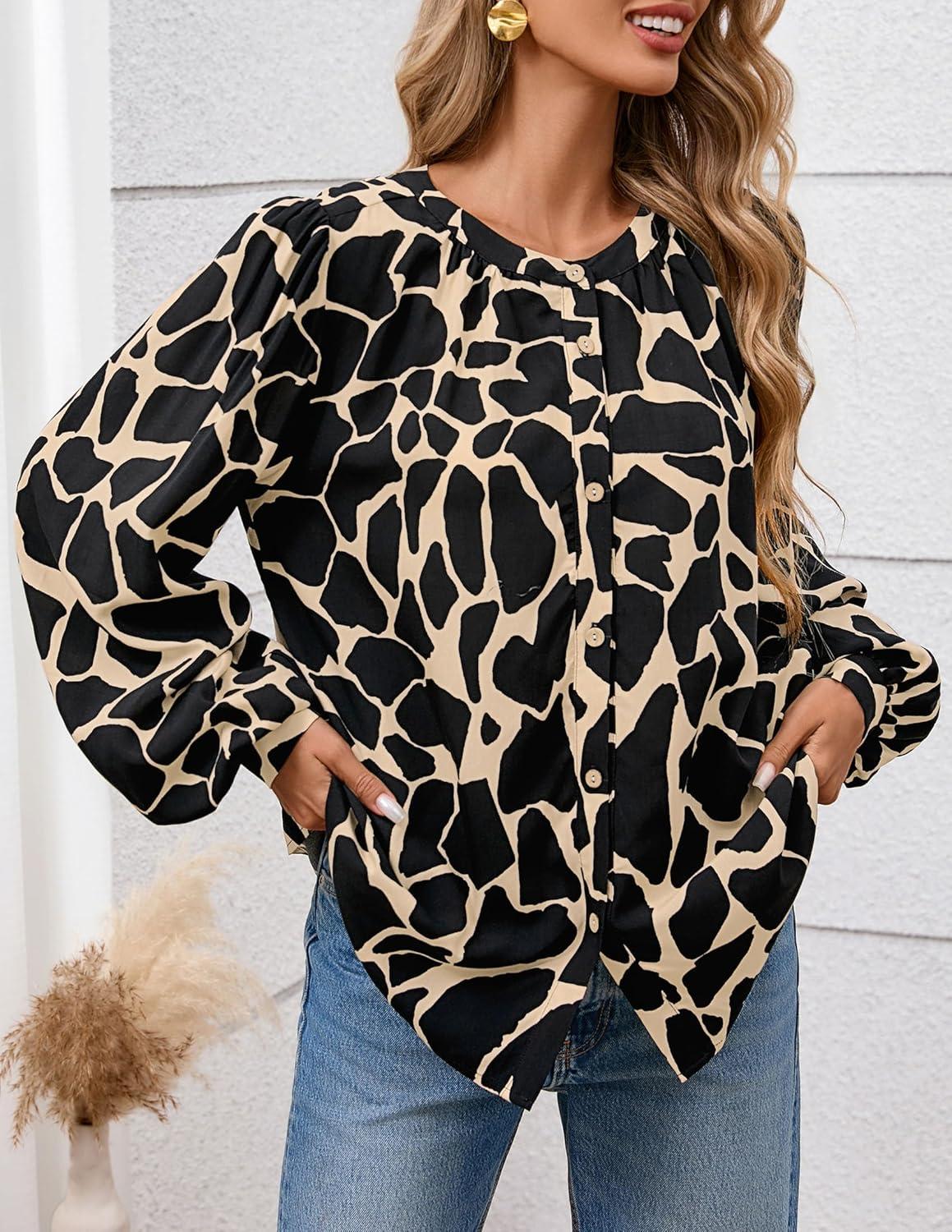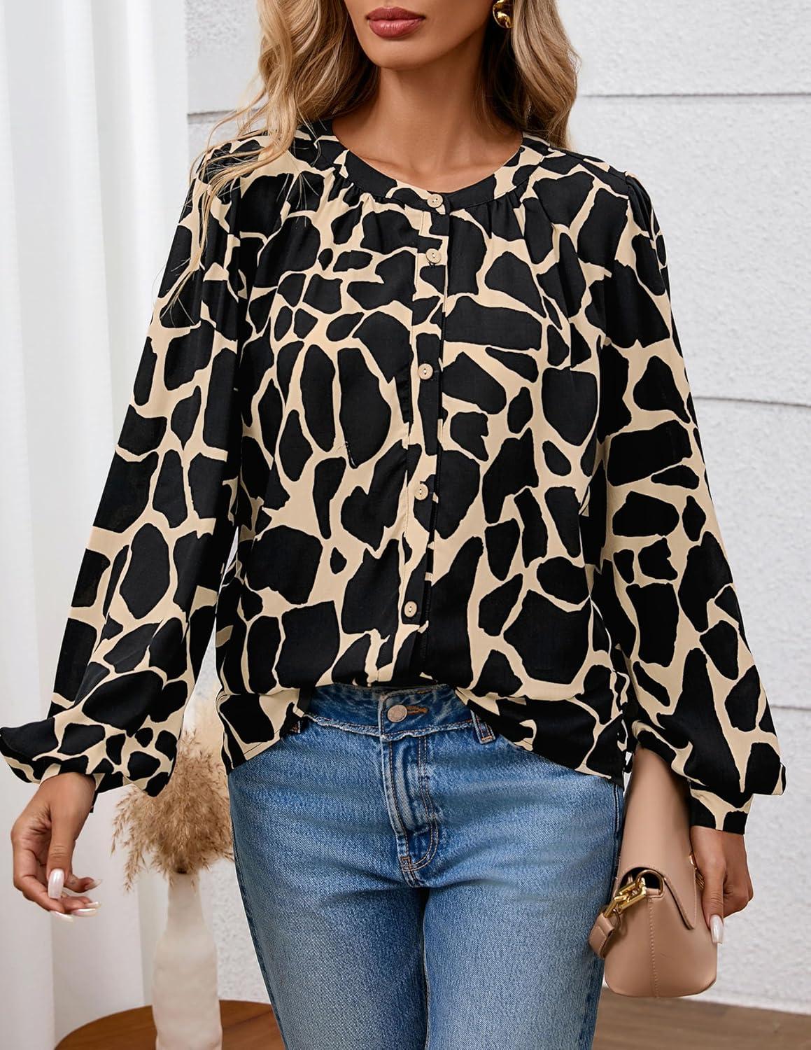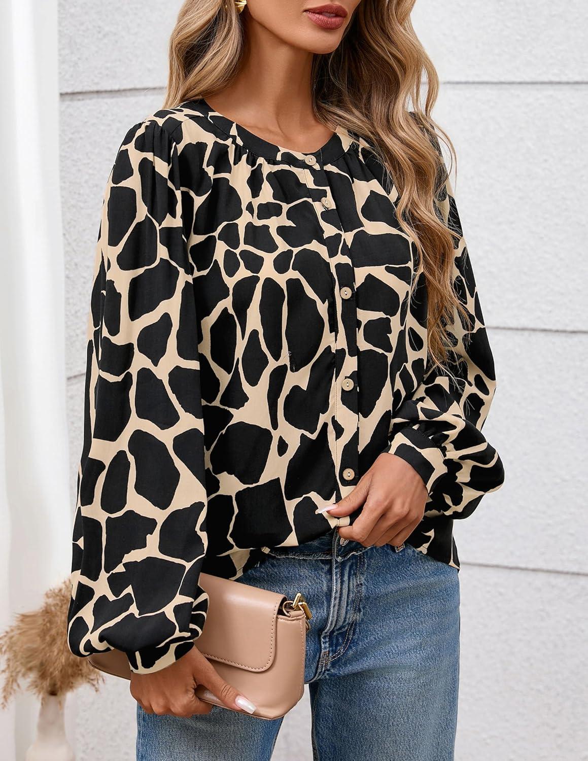 PRETTYGARDEN Women's Floral Button Down Blouse 2025 Fall Fashion Dressy Casual Long Sleeve Oversized Shirts Top Boho Clothes(Black)