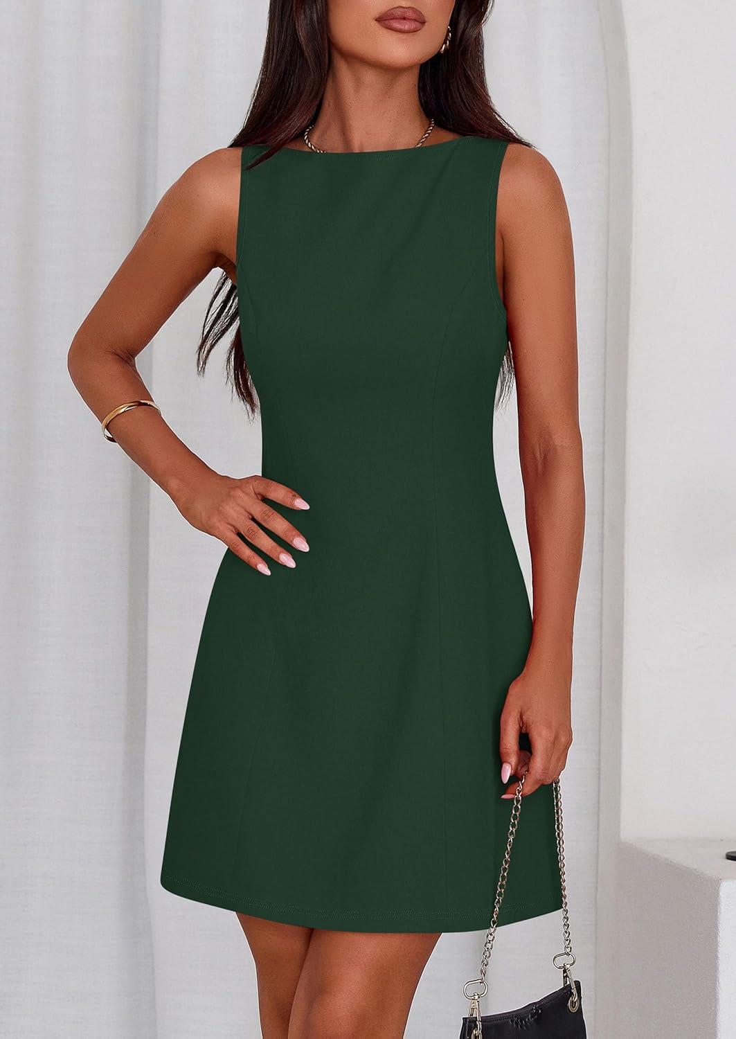 PRETTYGARDEN Womens Formal Short Dresses 2025 Summer Sleeveless Boat Neck A Line Elegant Mini Cocktail Party Dress(Dark Green)