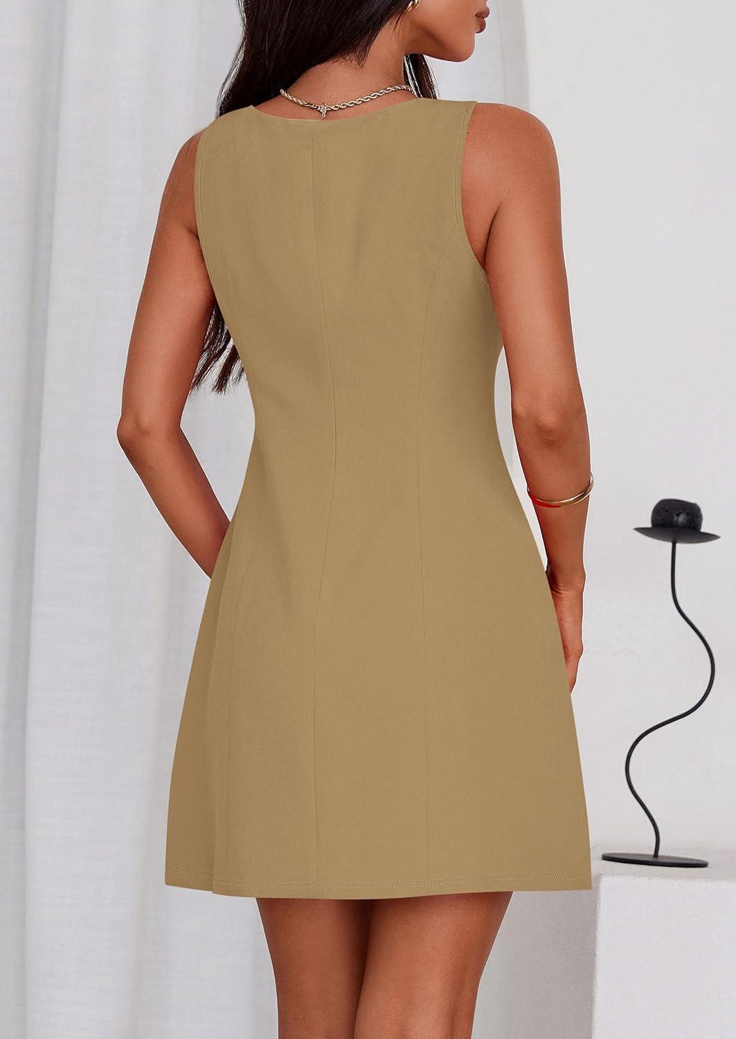 PRETTYGARDEN Womens Formal Short Dresses 2025 Summer Sleeveless Boat Neck A Line Elegant Mini Cocktail Party Dress(Khaki)