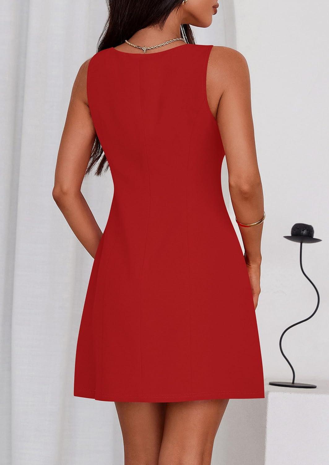 PRETTYGARDEN Womens Formal Short Dresses 2025 Summer Sleeveless Boat Neck A Line Elegant Mini Cocktail Party Dress(Red)