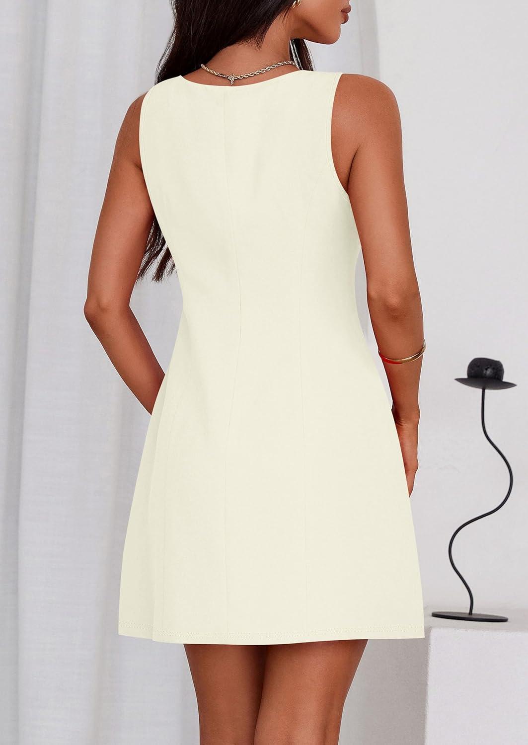 PRETTYGARDEN Womens Formal Short Dresses 2026 Summer Sleeveless Boat Neck A Line Elegant Mini Cocktail Party Dress(Beige)