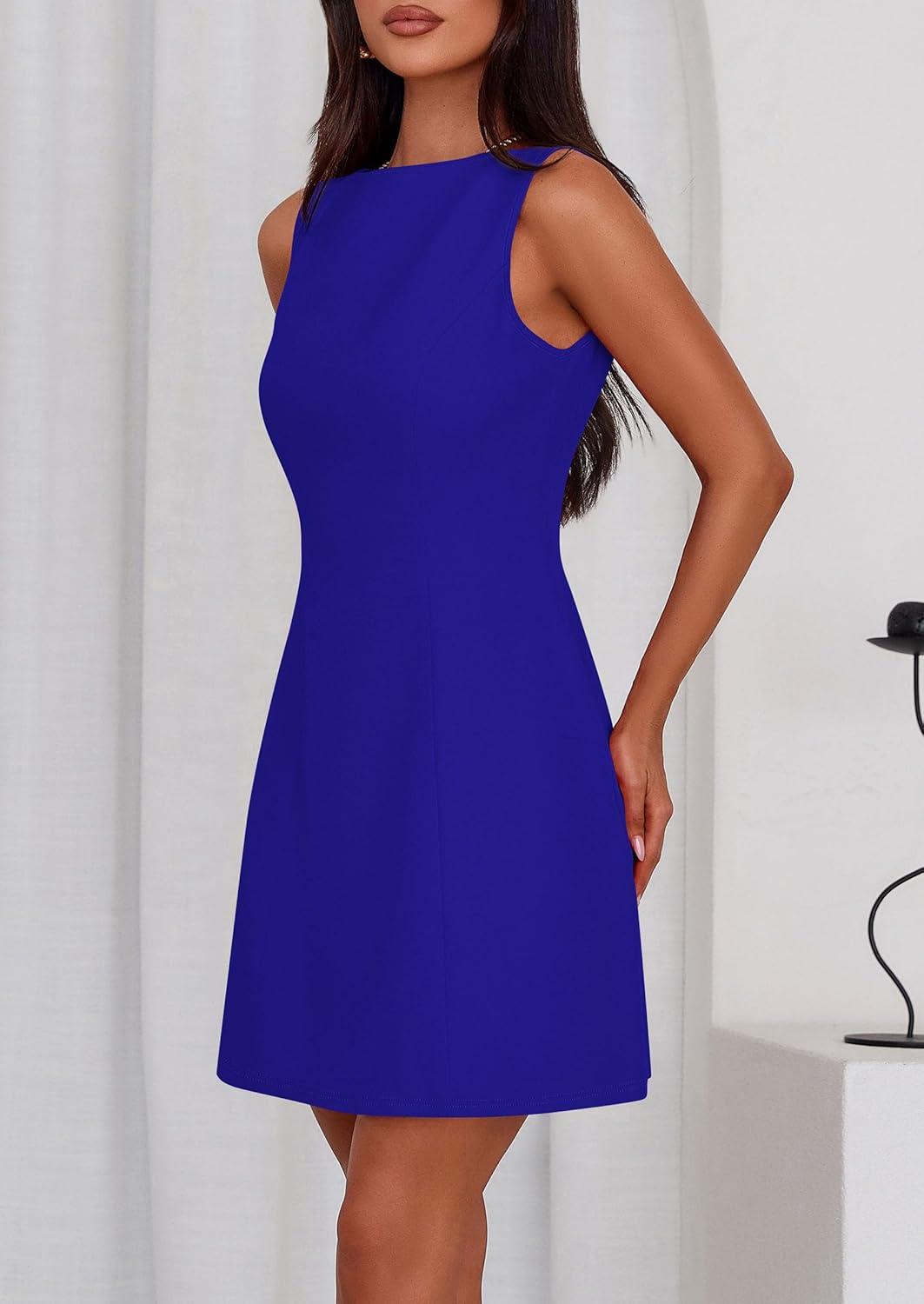 PRETTYGARDEN Womens Formal Short Dresses 2026 Summer Sleeveless Boat Neck A Line Elegant Mini Cocktail Party Dress(Blue)
