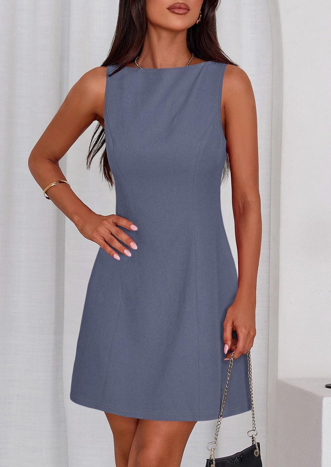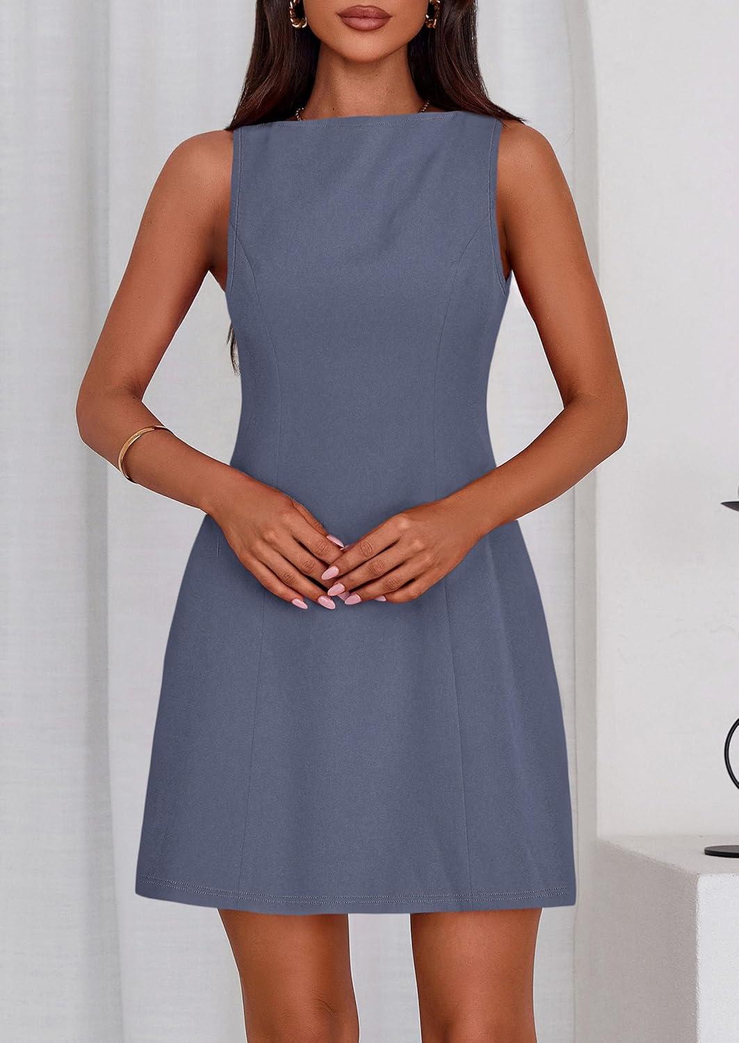 PRETTYGARDEN Womens Formal Short Dresses 2026 Summer Sleeveless Boat Neck A Line Elegant Mini Cocktail Party Dress(Dusty Blue)