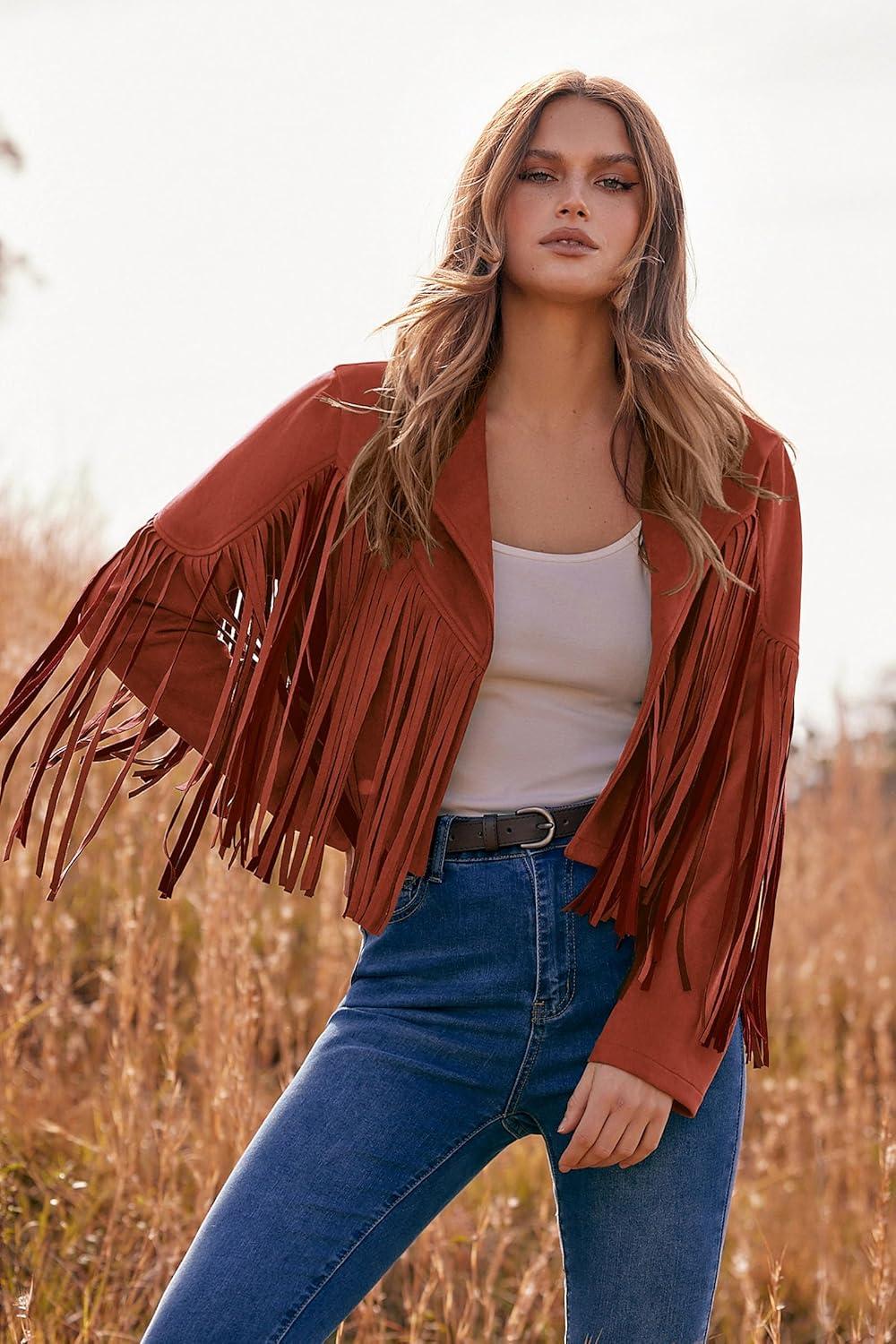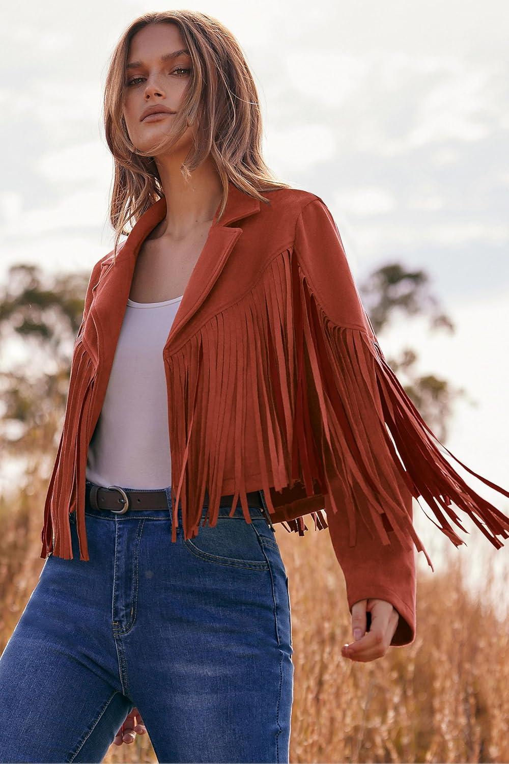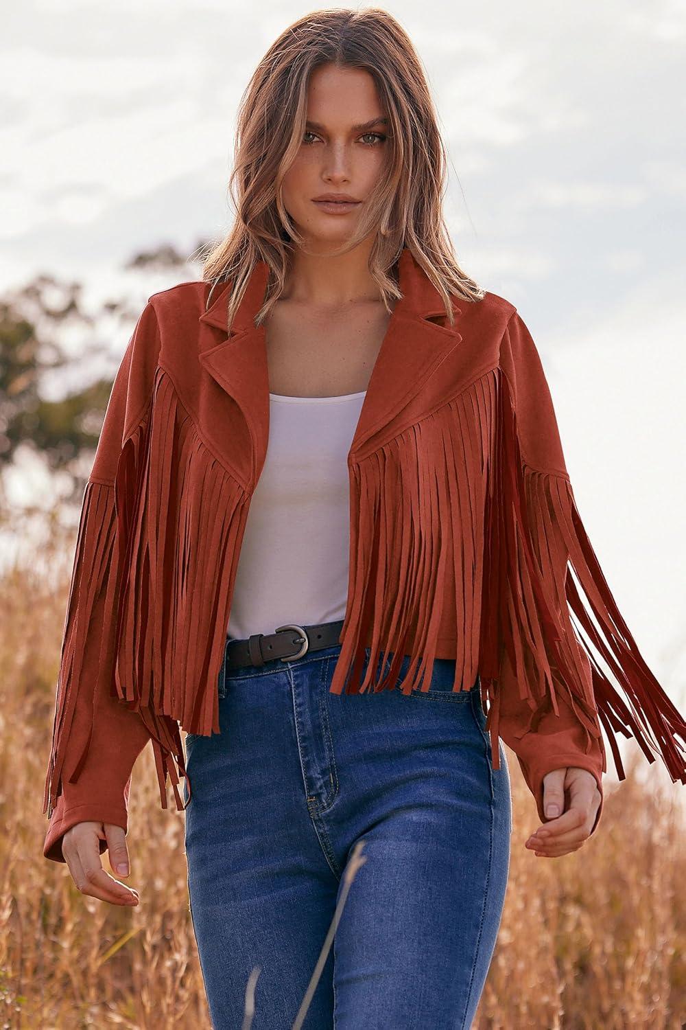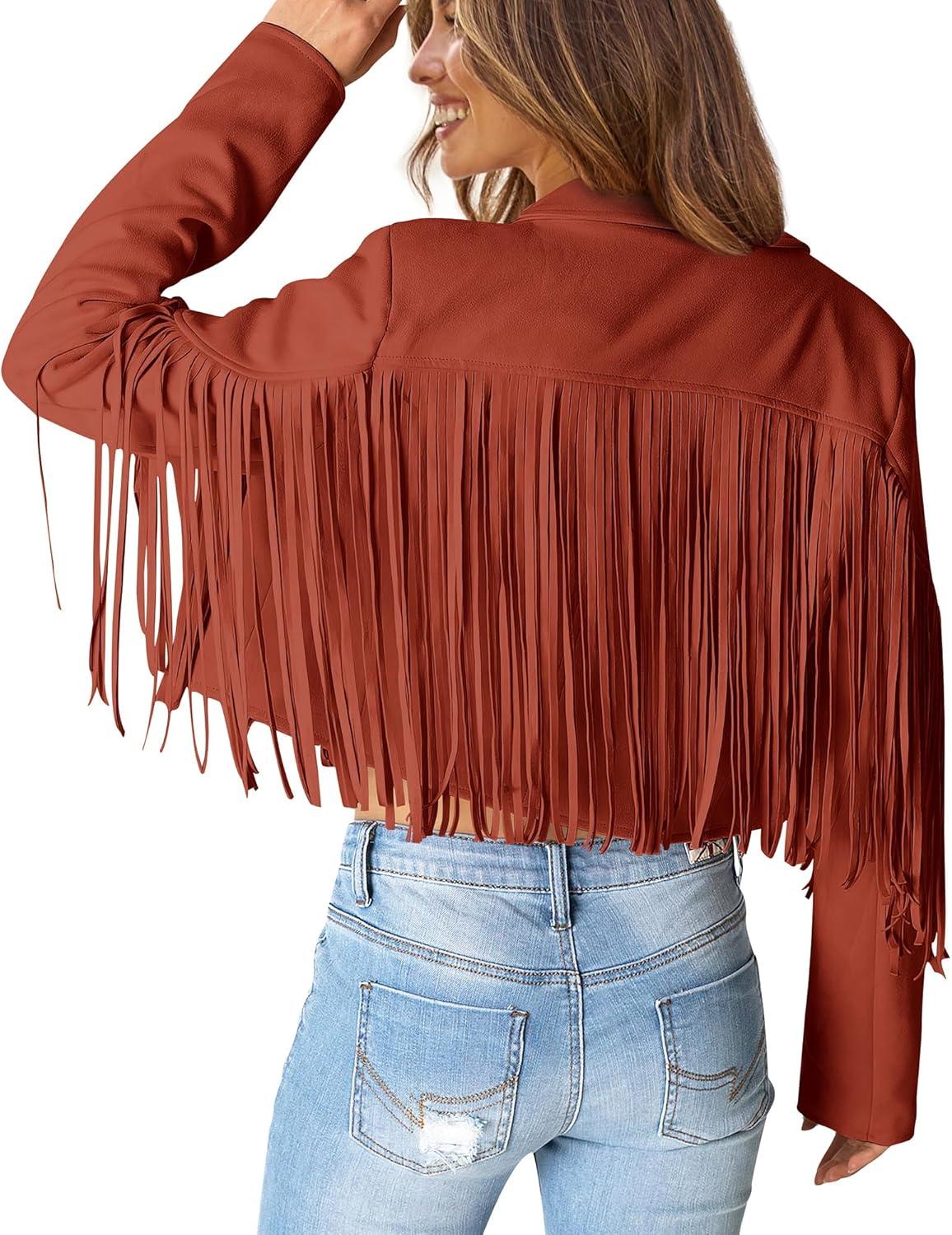 PRETTYGARDEN Women's Fringe Faux Suede Leather Jackets Fall Fashion 2025 Tassel Motorcycle Cropped Coats(Brick Red)