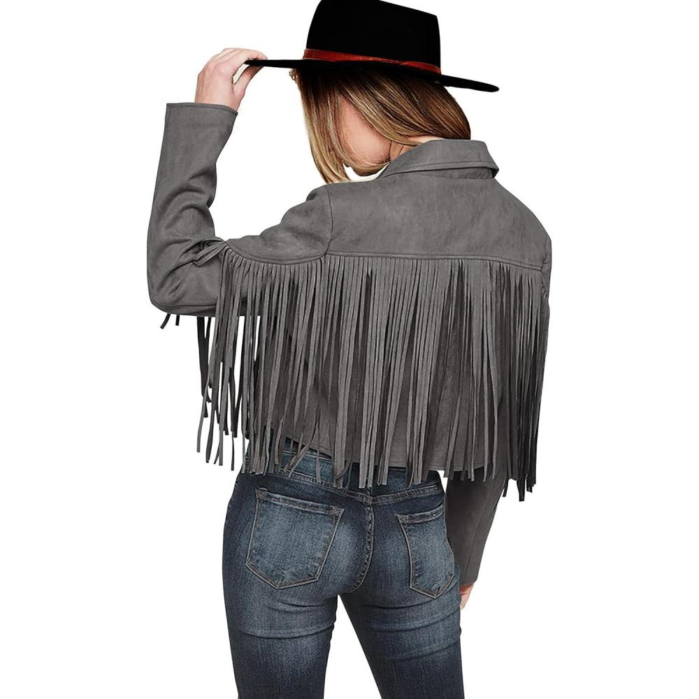 PRETTYGARDEN Women's Fringe Faux Suede Leather Jackets Fall Fashion 2025 Tassel Motorcycle Cropped Coats(Silver Grey)