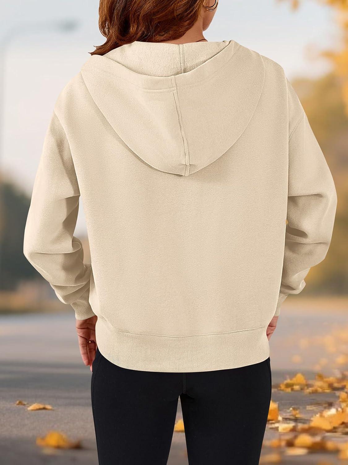 PRETTYGARDEN Women’s Half Zip Up Hoodies 2025 Fall Long Sleeve Cropped Pullover Oversized Sweatshirt Fashion Y2K Clothes(Beige)