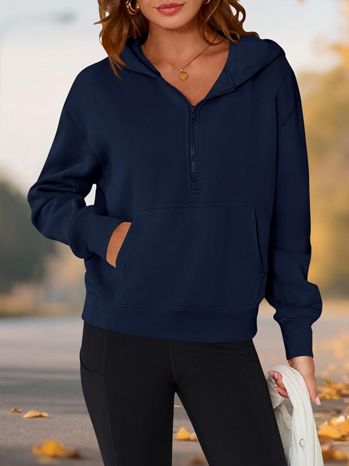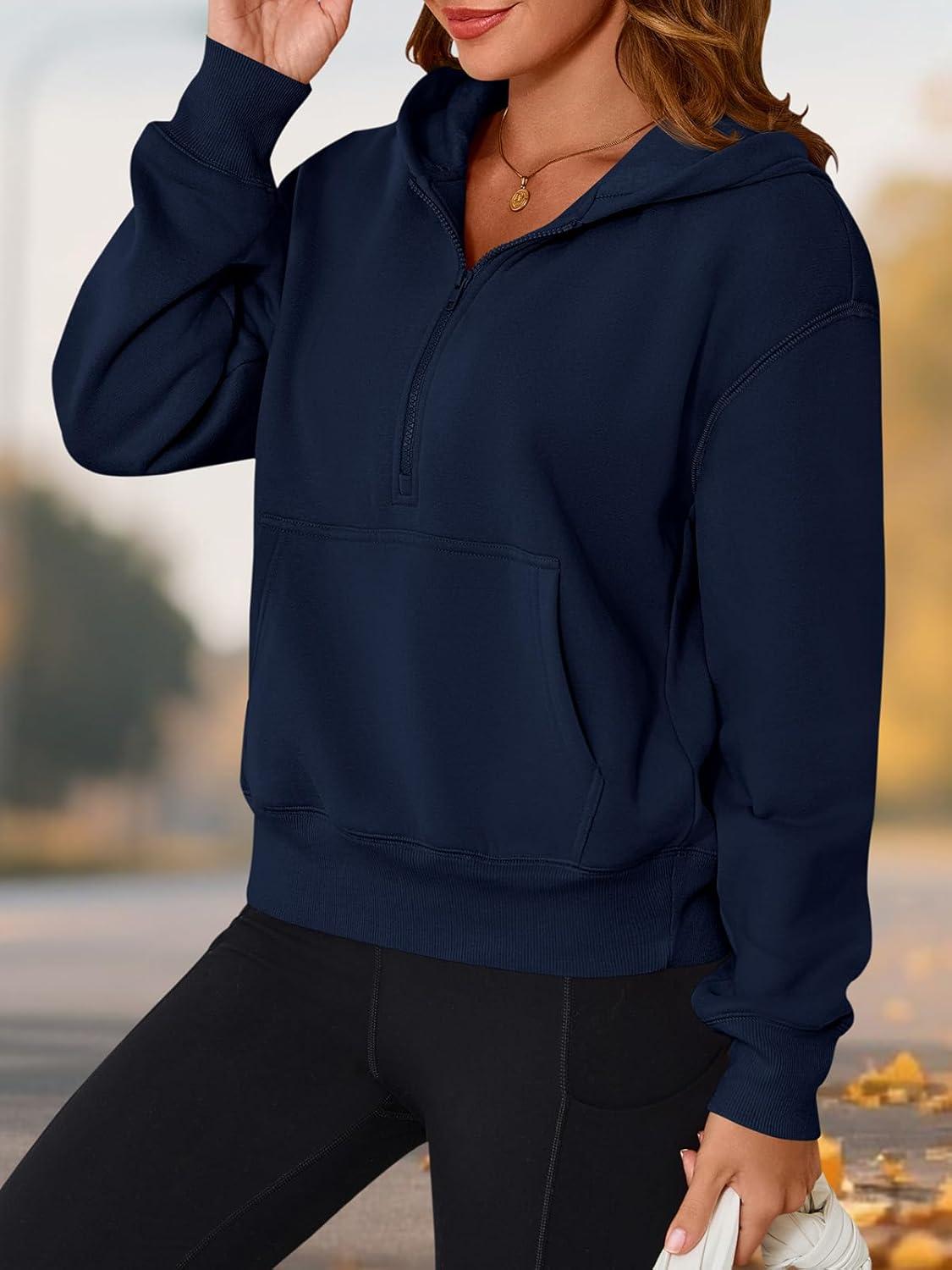 PRETTYGARDEN Women's Half Zip Up Hoodies 2025 Fall Long Sleeve Cropped Pullover Oversized Sweatshirt Fashion Y2K Clothes(Navy)