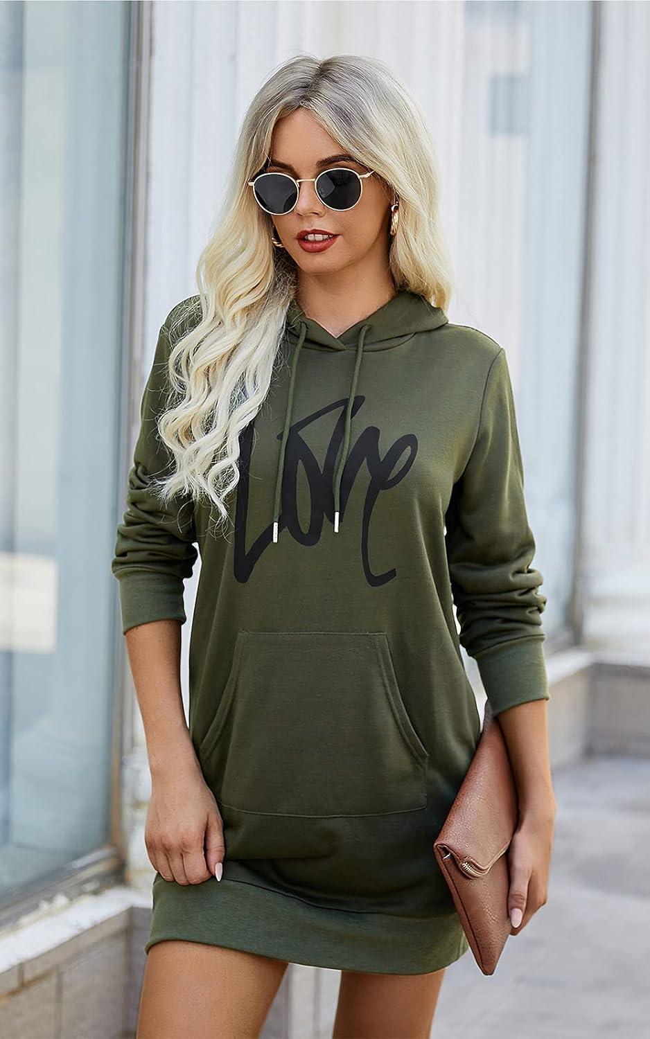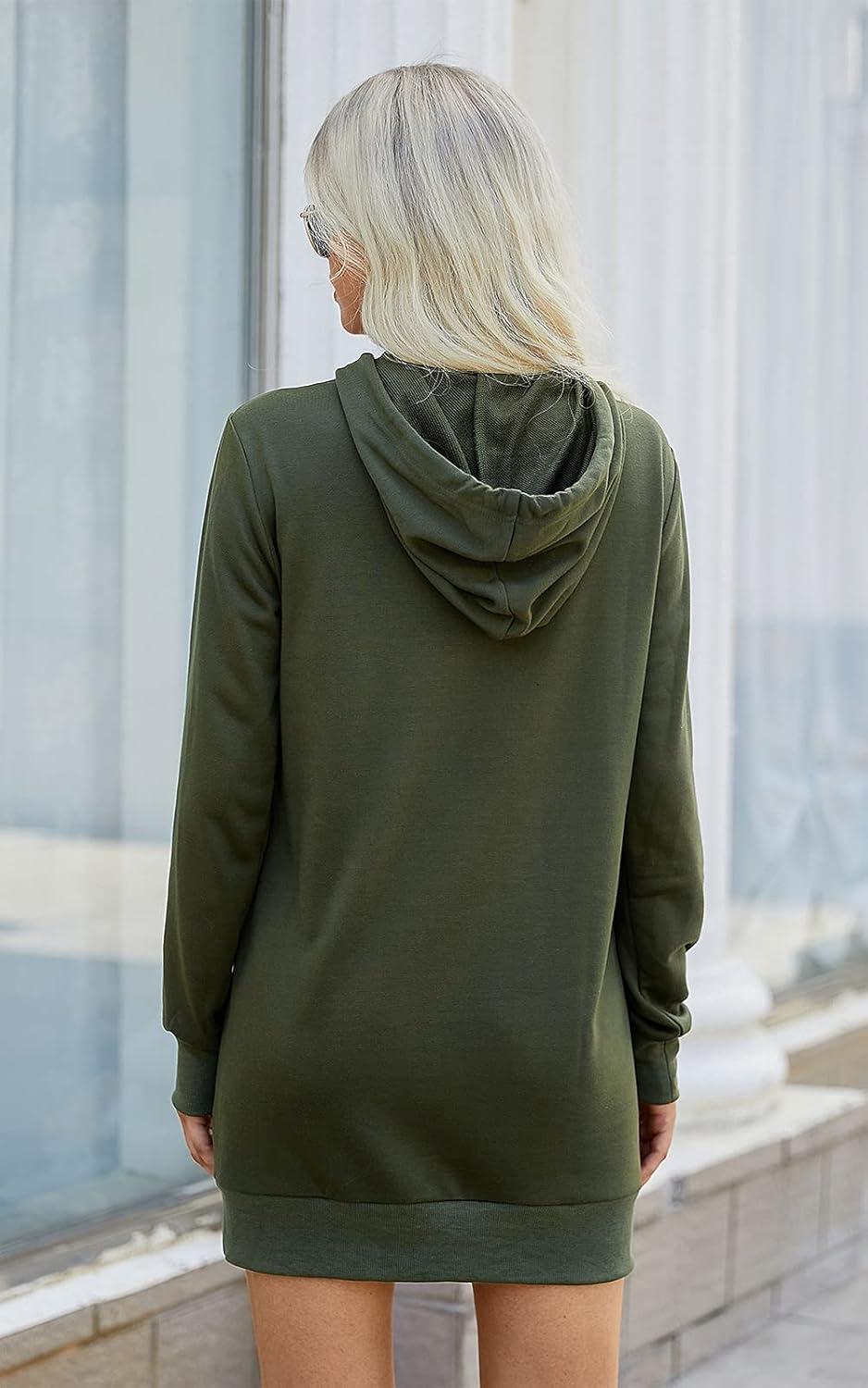 PRETTYGARDEN Women’s Hooded Sweatshirt Fall Fashion Drawstring Lightweight Long Sleeve Pullover Hoodie Dress(Army Green)