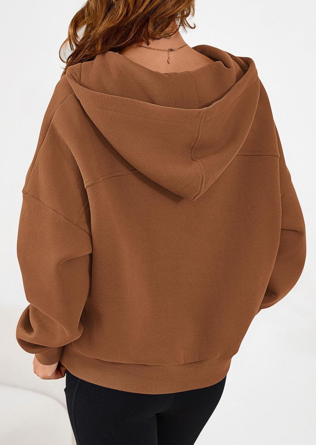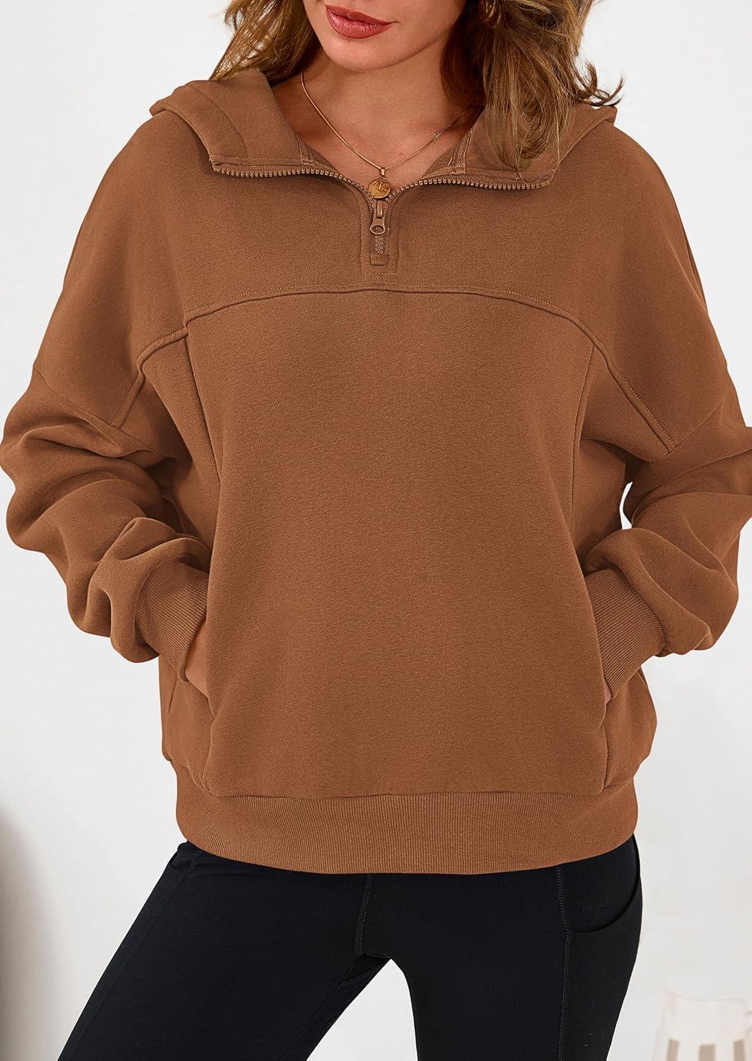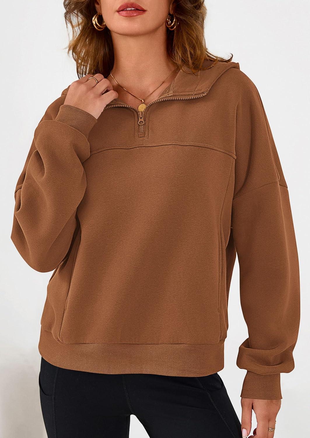 PRETTYGARDEN Womens Hoodies Cropped Fleece Sweatshirts 2025 Fall Fashion Quarter Zip Pullover Long Sleeve Tops Winter Clothes(Brown)
