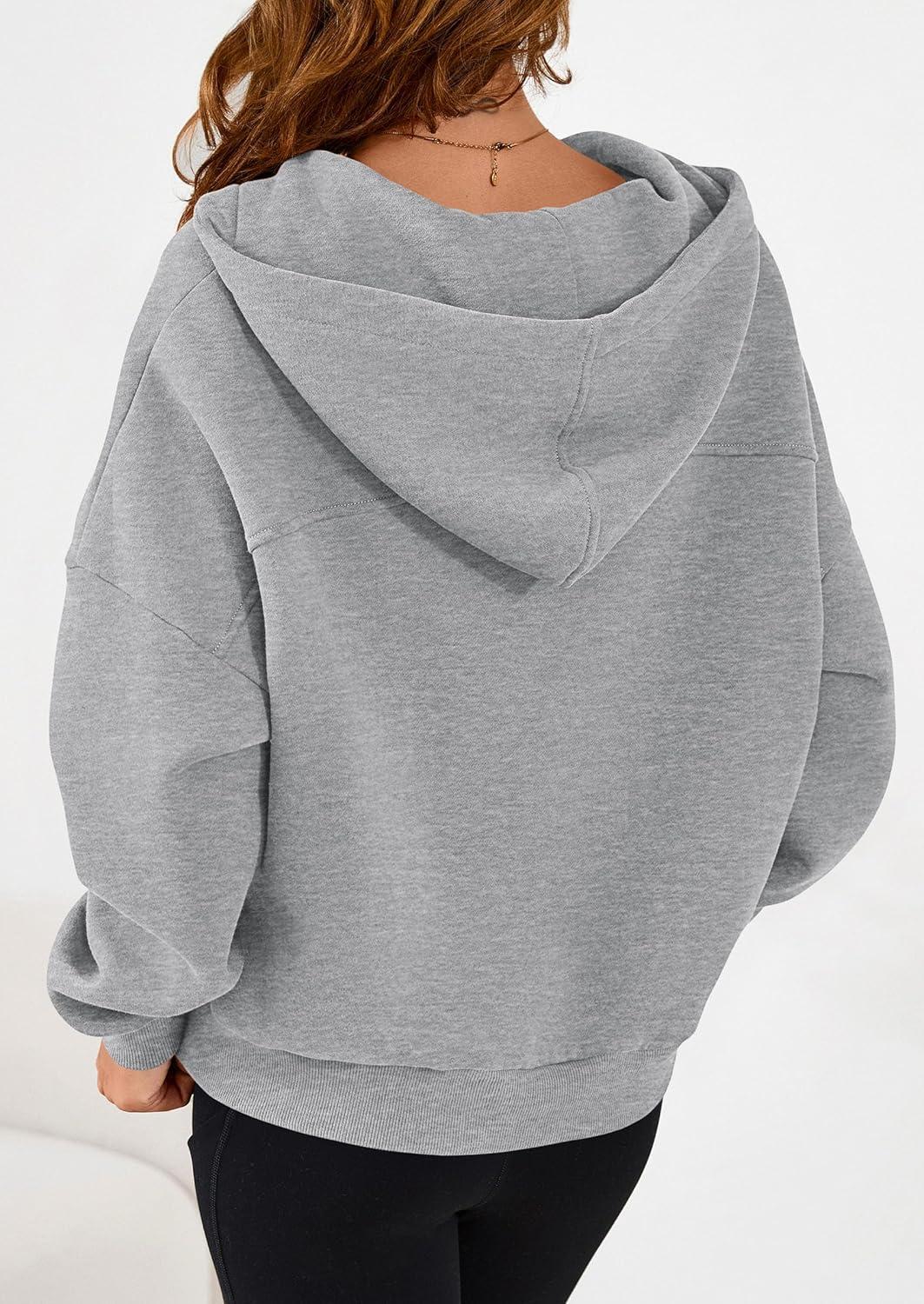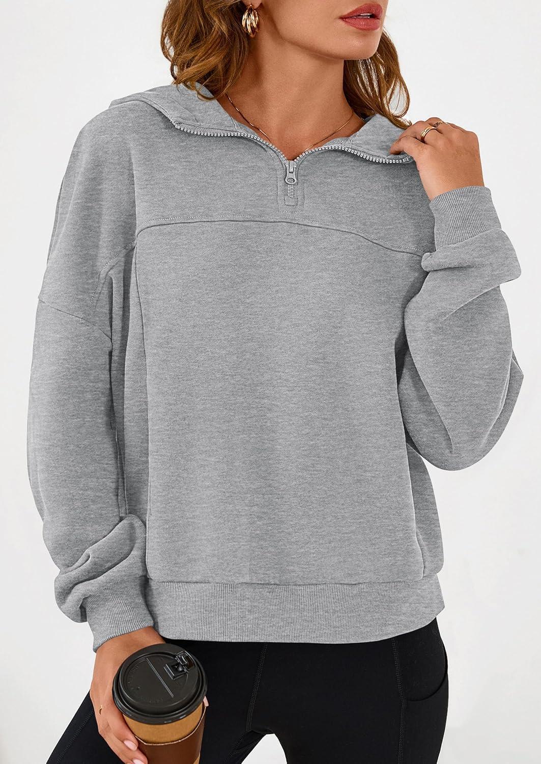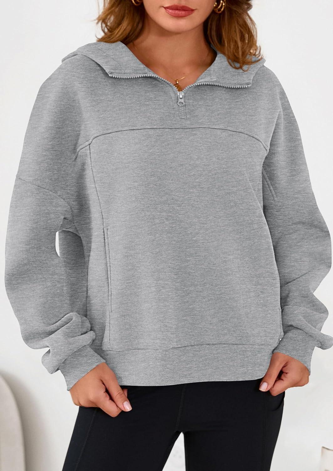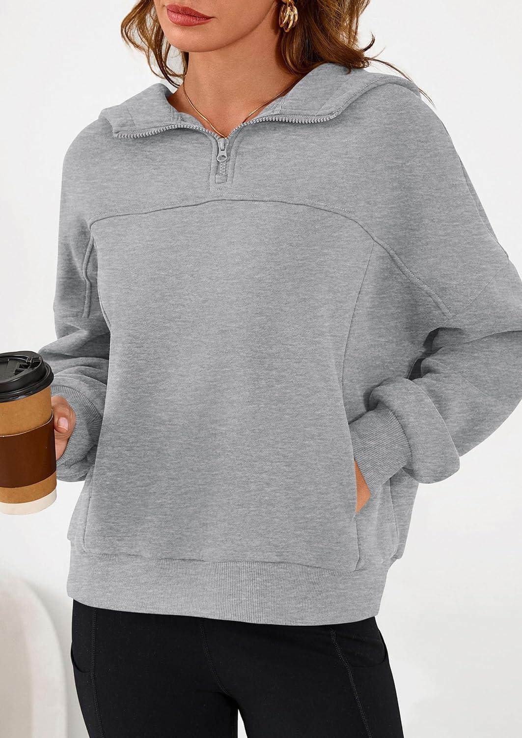 PRETTYGARDEN Womens Hoodies Cropped Fleece Sweatshirts 2025 Fall Fashion Quarter Zip Pullover Long Sleeve Tops Winter Clothes(Grey)