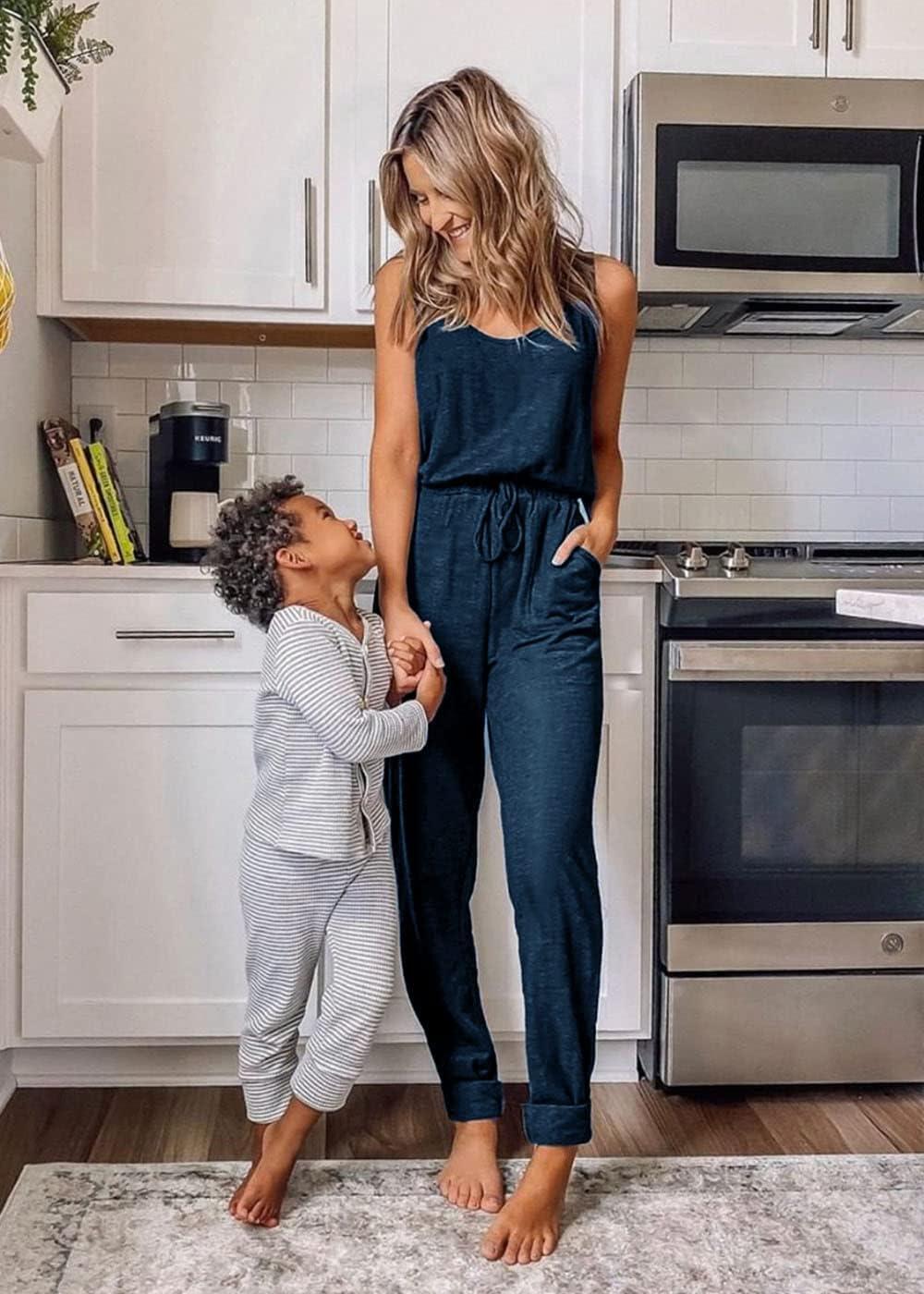 PRETTYGARDEN Womens Jumpsuit Casual Summer Romper 2025 Sleeveless Tank Lounge Cruise Airport Outfits Vacation Clothes(Dark Blue)