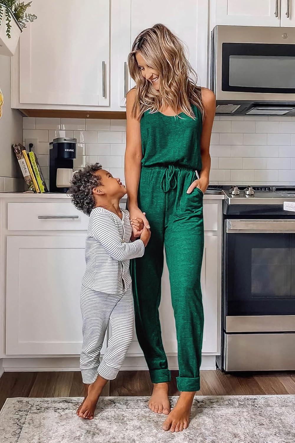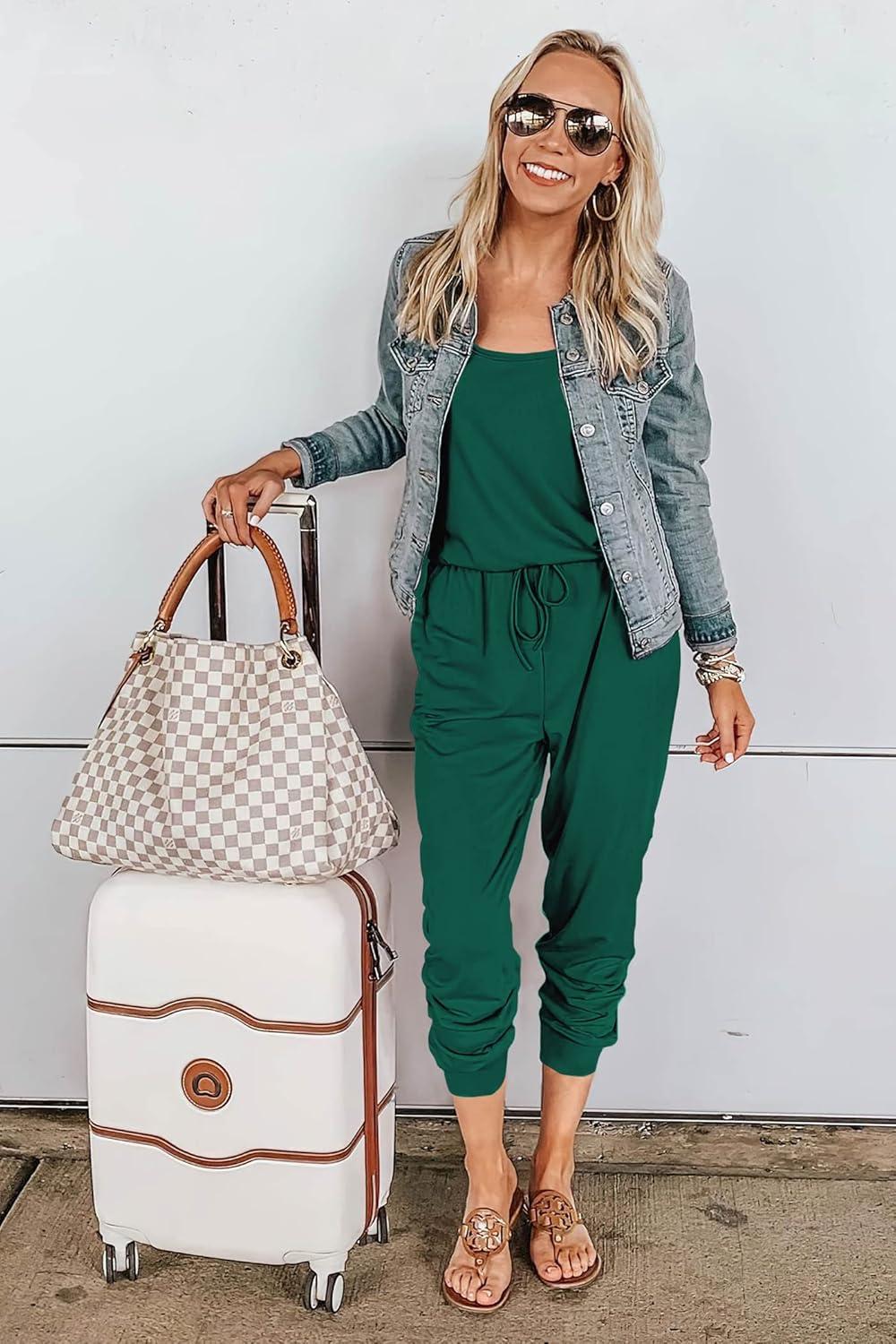 PRETTYGARDEN Womens Jumpsuit Casual Summer Romper 2025 Sleeveless Tank Lounge Cruise Airport Outfits Vacation Clothes(Green)