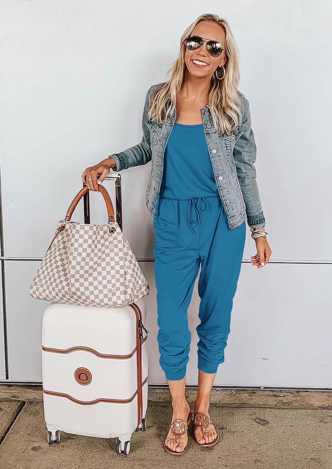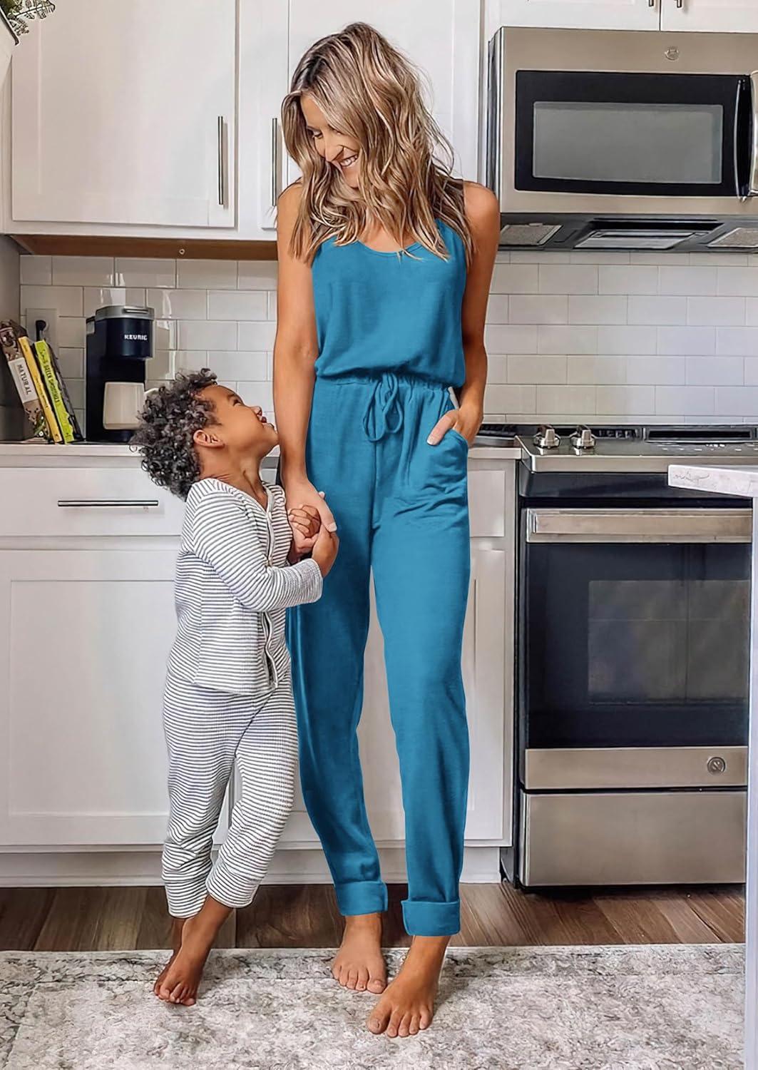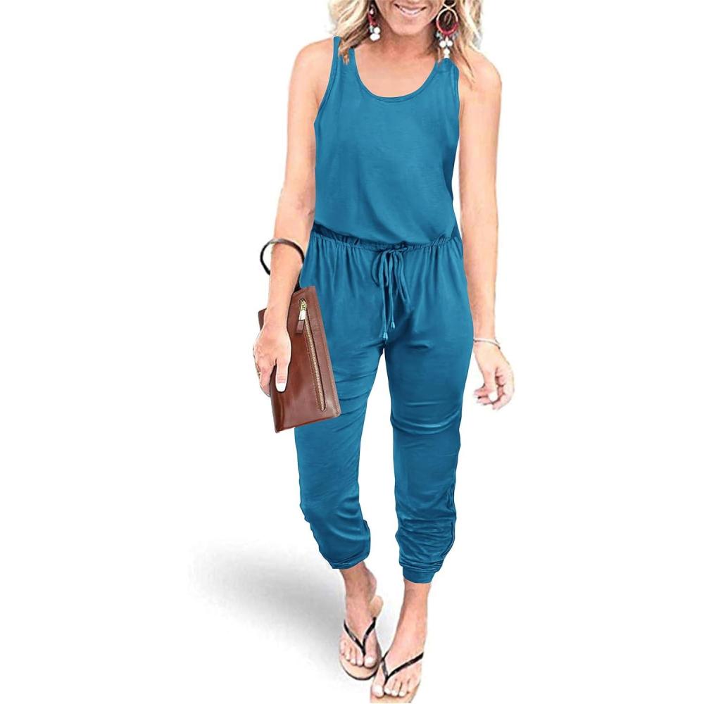 PRETTYGARDEN Womens Jumpsuit Casual Summer Romper 2025 Sleeveless Tank Lounge Cruise Airport Outfits Vacation Clothes(Grey Blue)