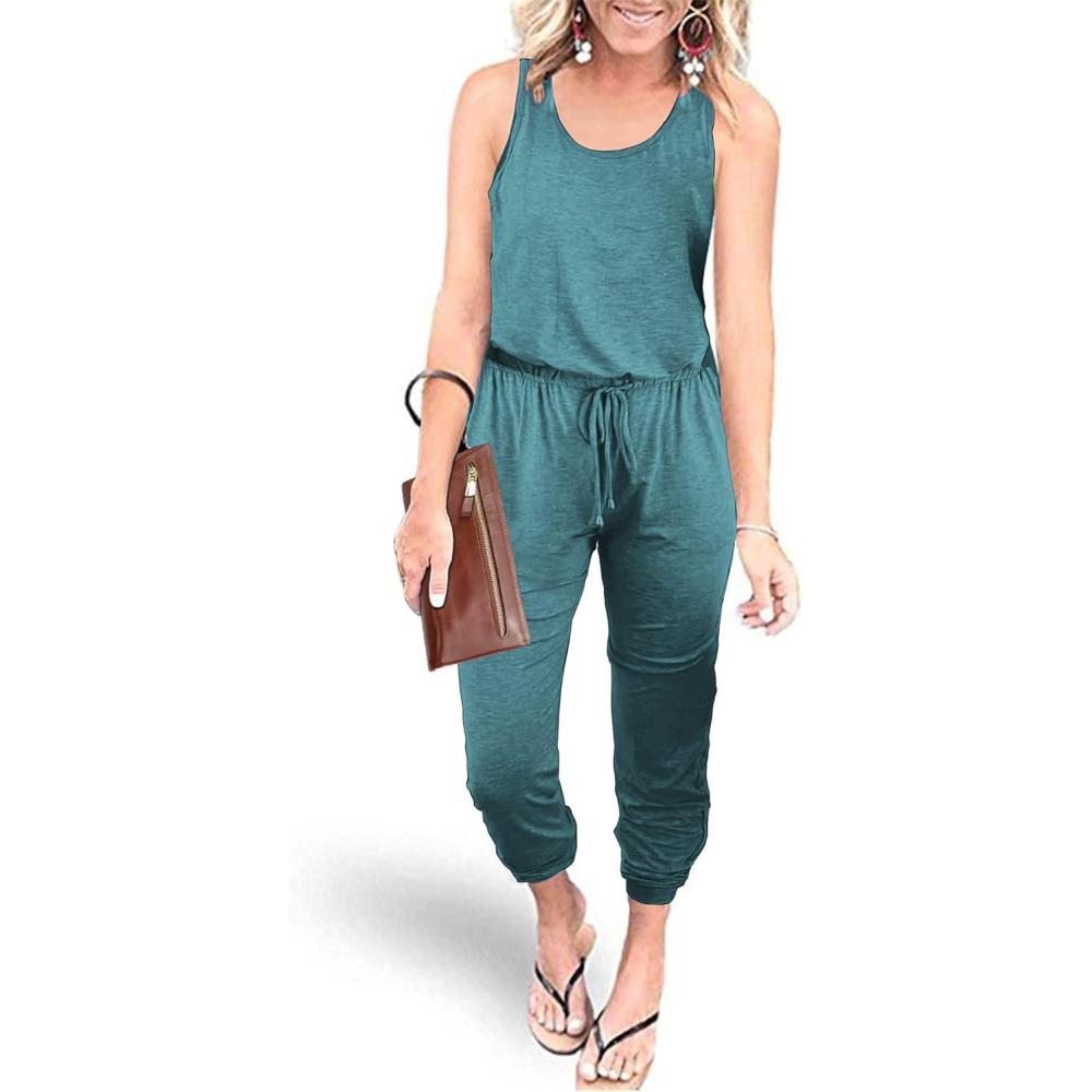 PRETTYGARDEN Womens Jumpsuit Casual Summer Romper 2025 Sleeveless Tank Lounge Cruise Airport Outfits Vacation Clothes(Grey Green)