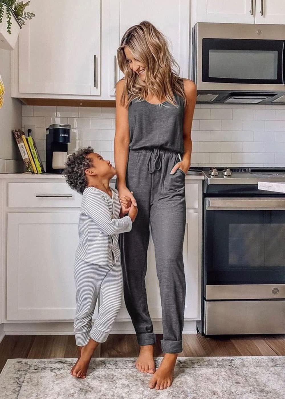 PRETTYGARDEN Womens Jumpsuit Casual Summer Romper 2025 Sleeveless Tank Lounge Cruise Airport Outfits Vacation Clothes(Grey)