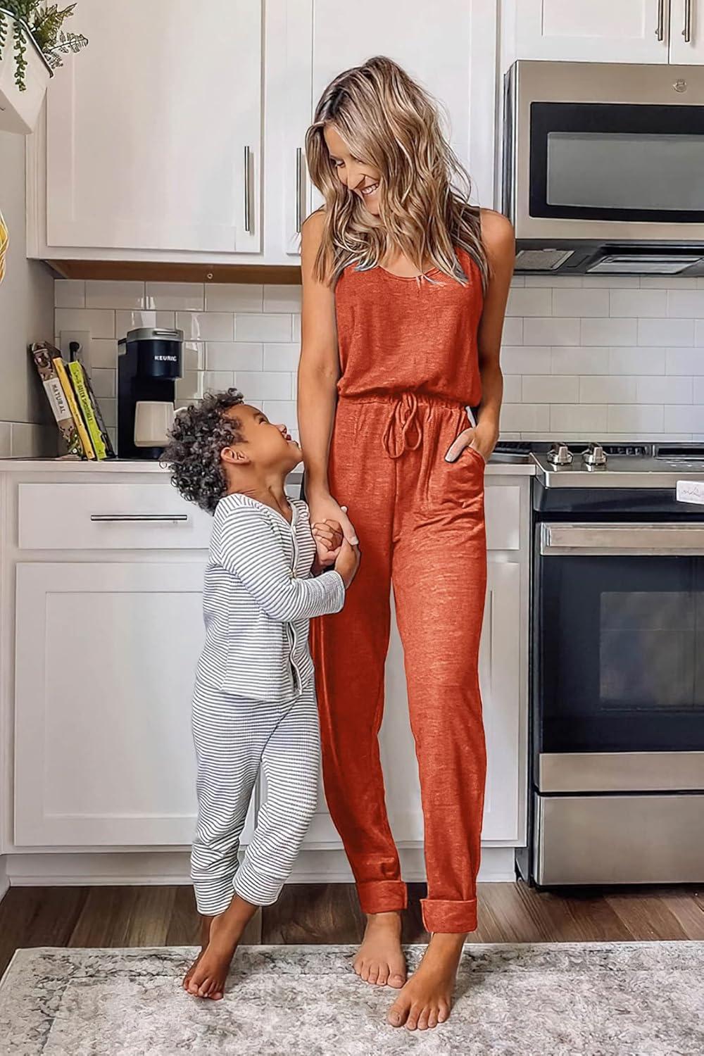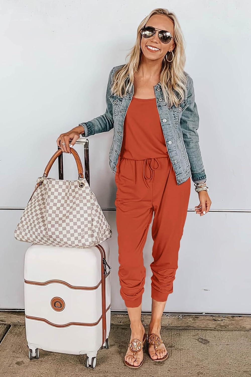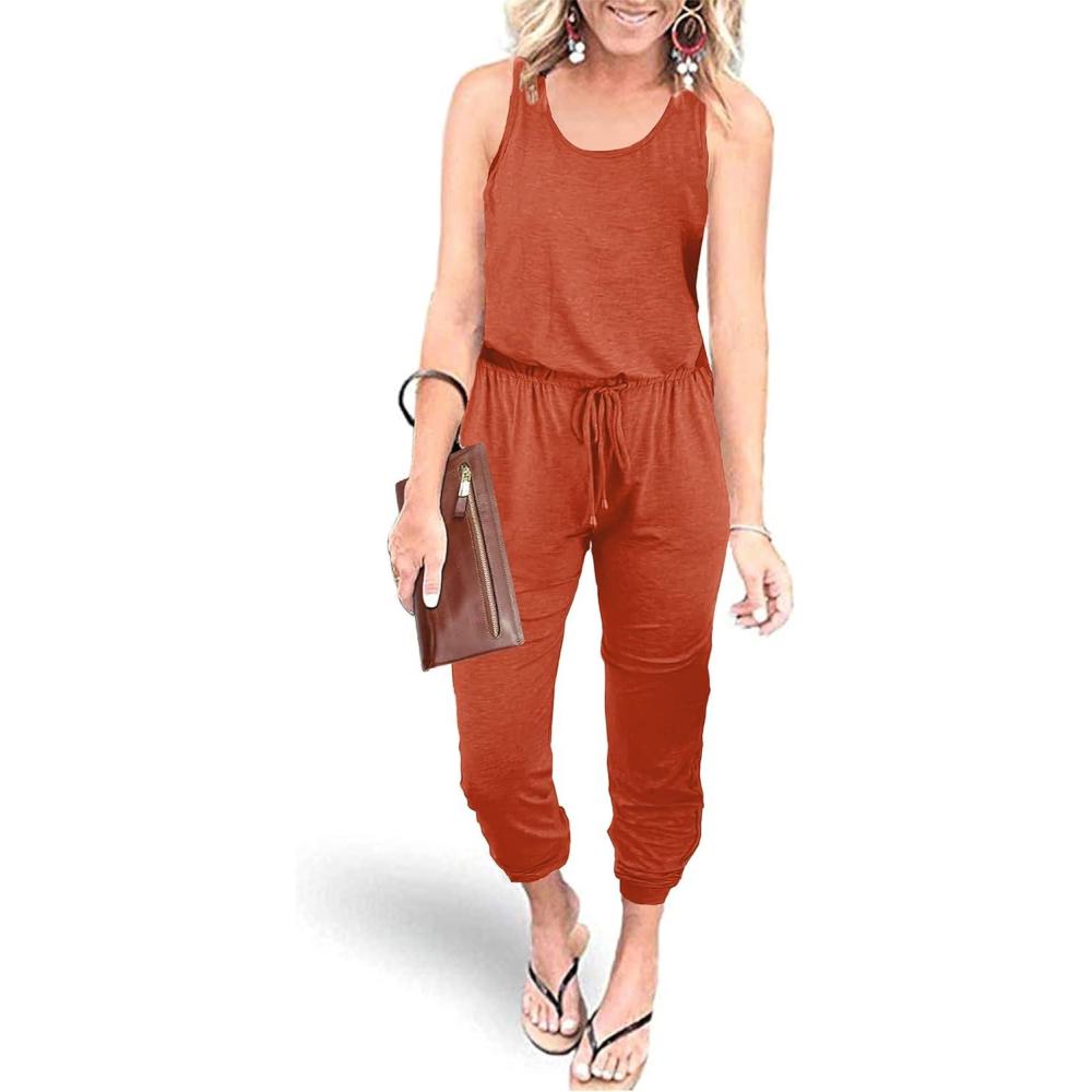 PRETTYGARDEN Womens Jumpsuit Casual Summer Romper 2025 Sleeveless Tank Lounge Cruise Airport Outfits Vacation Clothes(Orange Red)