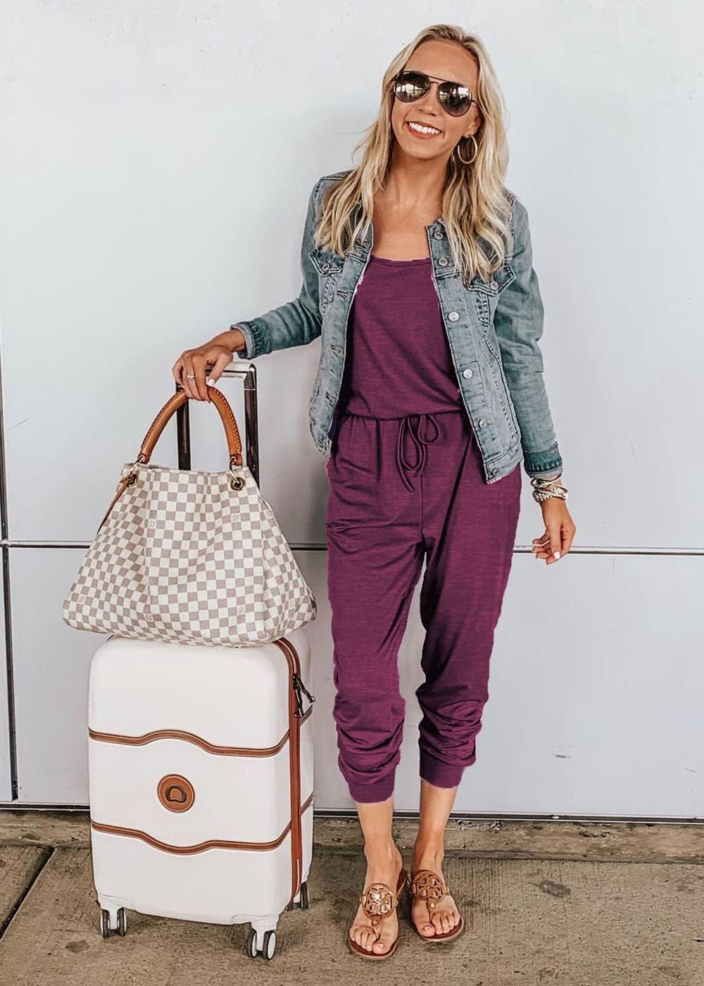 PRETTYGARDEN Womens Jumpsuit Casual Summer Romper 2025 Sleeveless Tank Lounge Cruise Airport Outfits Vacation Clothes(Purple)
