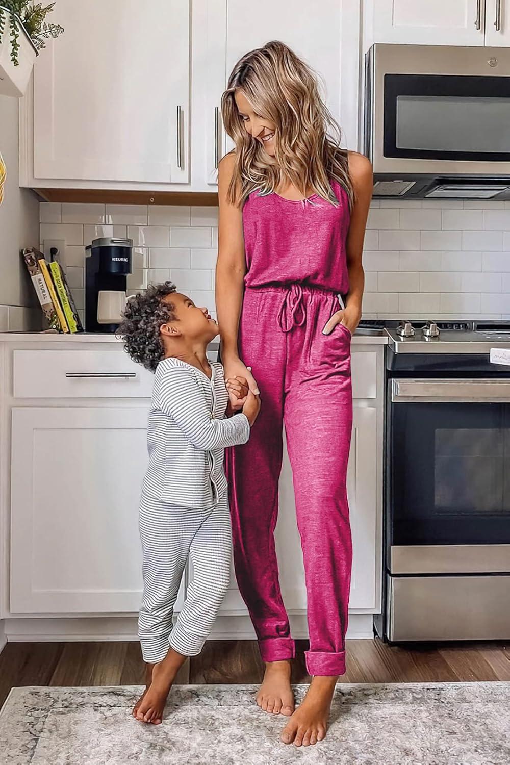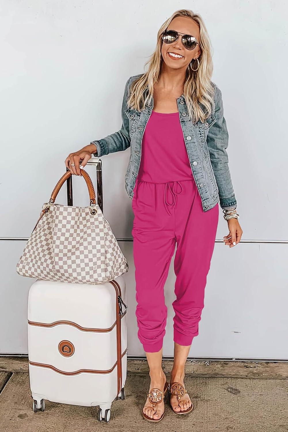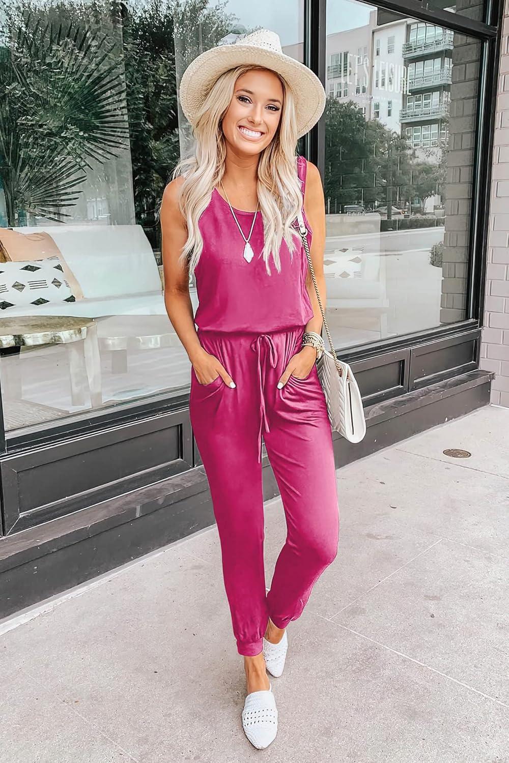 PRETTYGARDEN Womens Jumpsuit Casual Summer Romper 2025 Sleeveless Tank Lounge Cruise Airport Outfits Vacation Clothes(Rose Red)