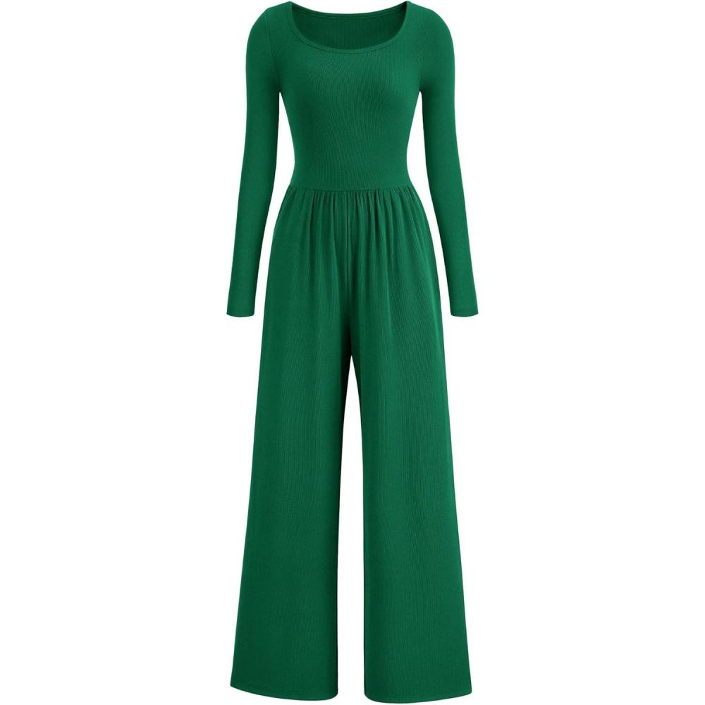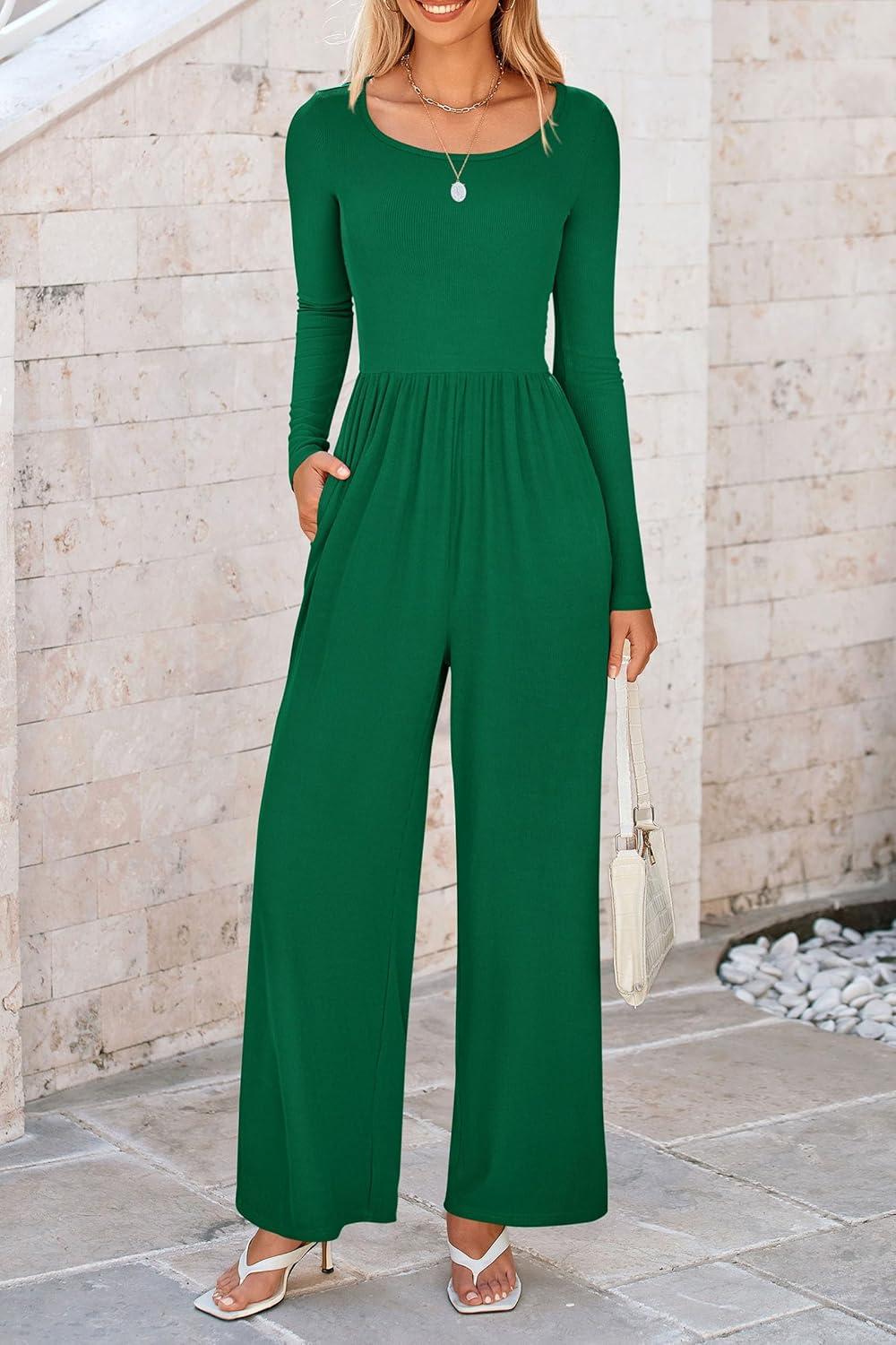 PRETTYGARDEN Womens Jumpsuits Dressy Casual Fall Fashion 2025 Trendy Long Sleeve Wide Leg Rompers Spring Work Office Outfits(Green)