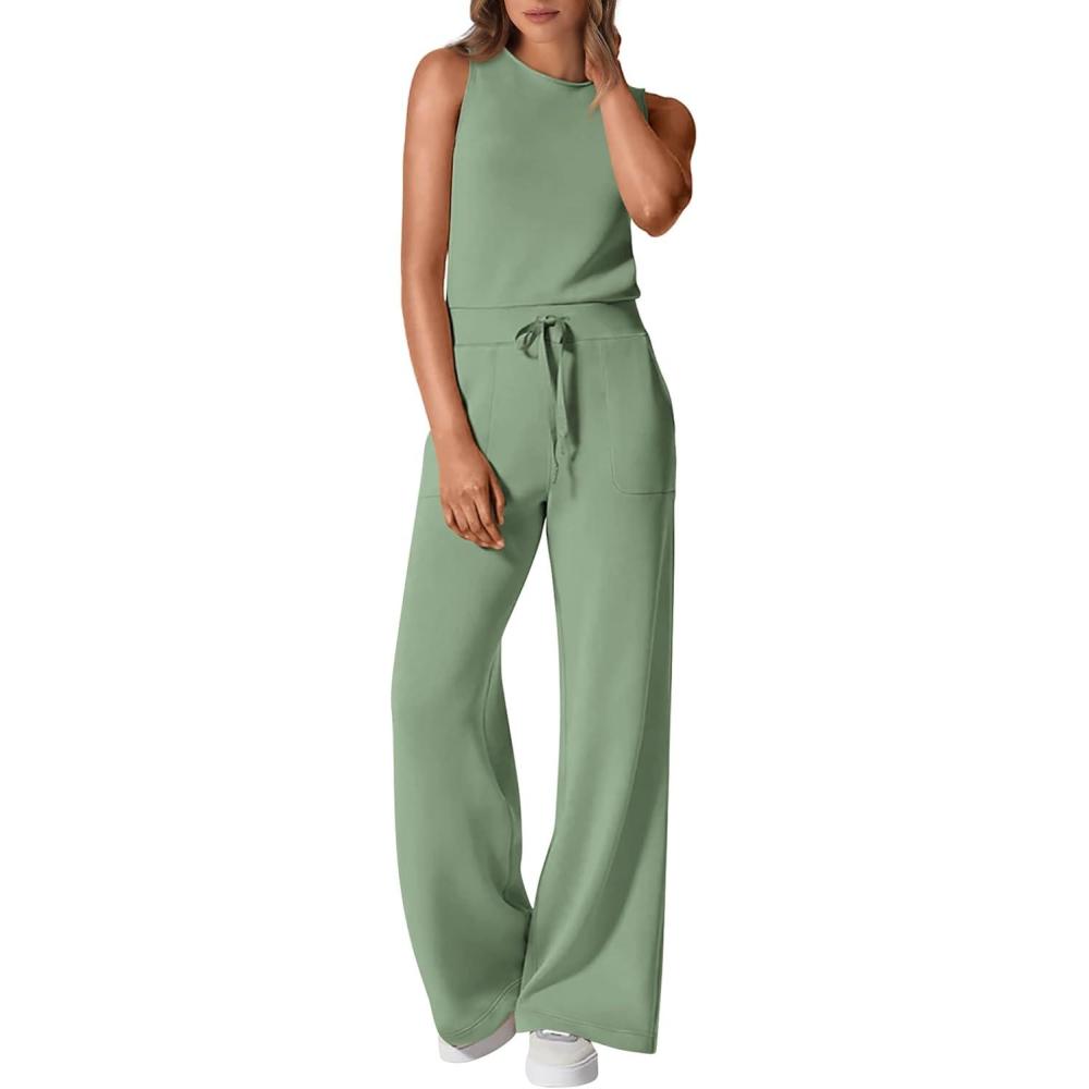 Be the first to review “PRETTYGARDEN Womens Jumpsuits Summer Casual One Piece Outfits Sleeveless Wide Leg Long Pants Rompers(Grey Green)”