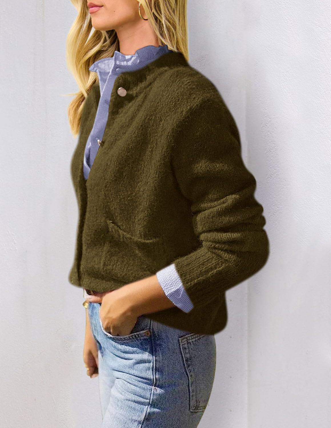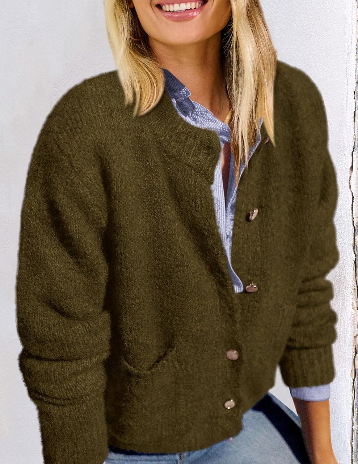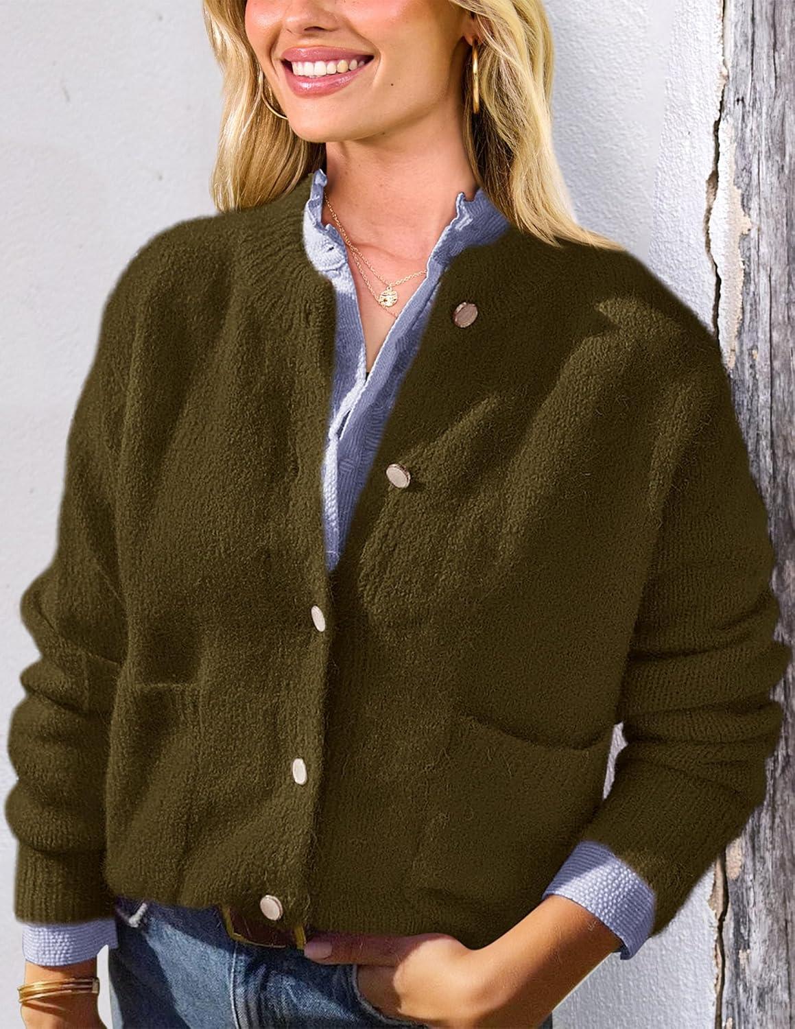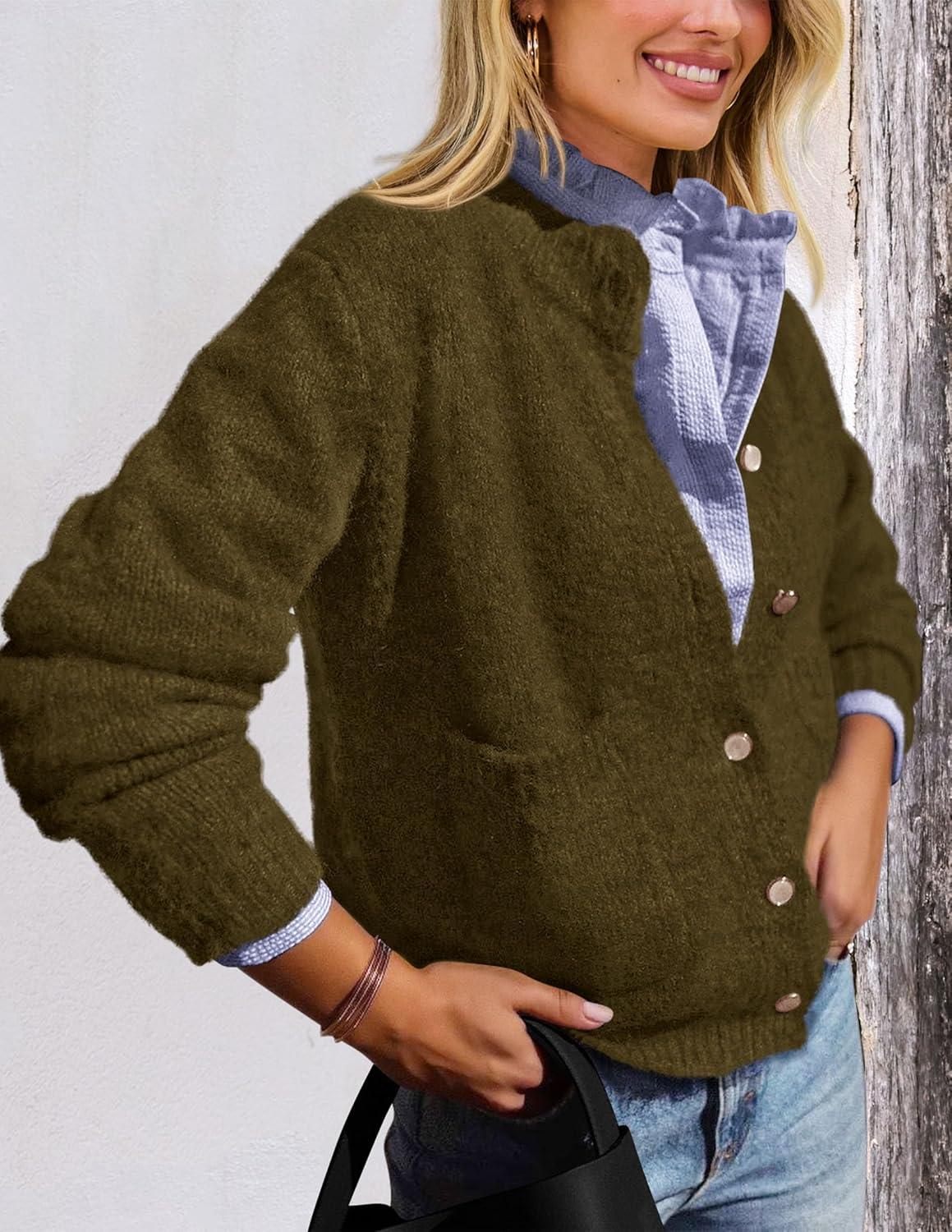 PRETTYGARDEN Women’s Knit Cardigan Sweaters Casual Long Sleeve Open Front Button Up Ribbed Fall Spring Sweater Jackets(Army Green)
