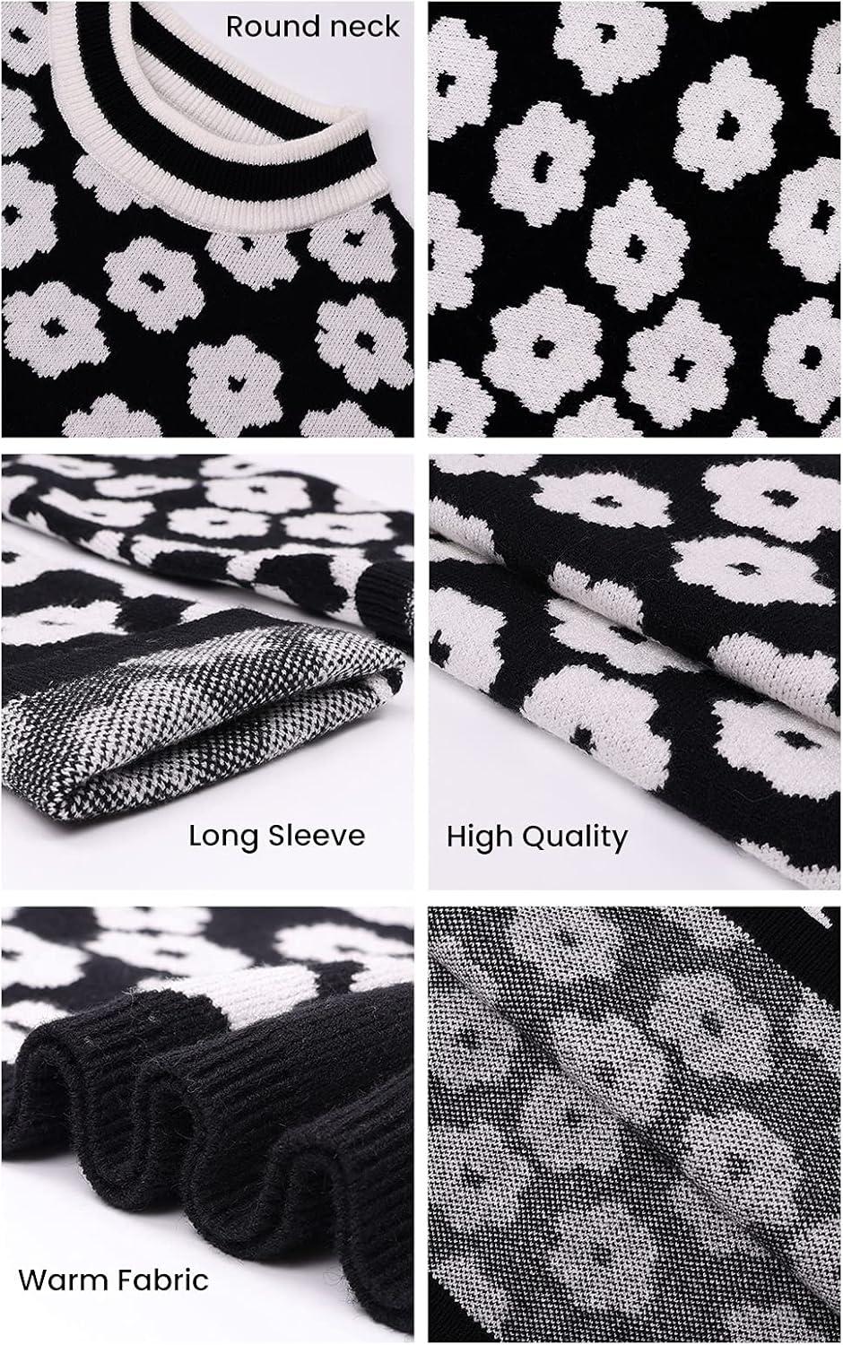 PRETTYGARDEN Women’s Knit Floral Print Sweater Crewneck Long Sleeve Lightweight Pullover Sweatshirt(Grey)