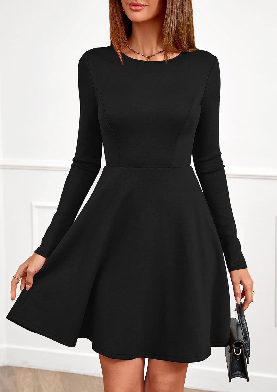 PRETTYGARDEN Womens Long Sleeve Cocktail Mini Dress 2025 Fall Crew Neck A Line Homecoming Party Short Dresses Elegant Classy(Black)