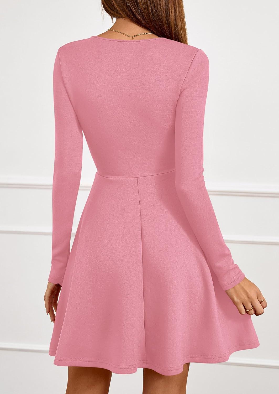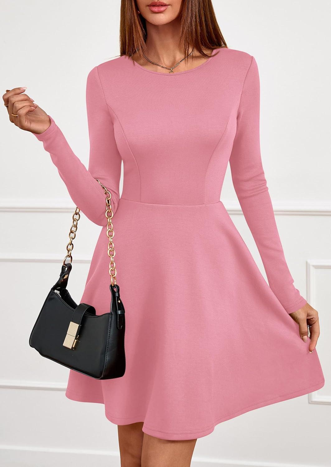 PRETTYGARDEN Womens Long Sleeve Cocktail Mini Dress 2025 Fall Crew Neck A Line Homecoming Party Short Dresses Elegant Classy(Pink)