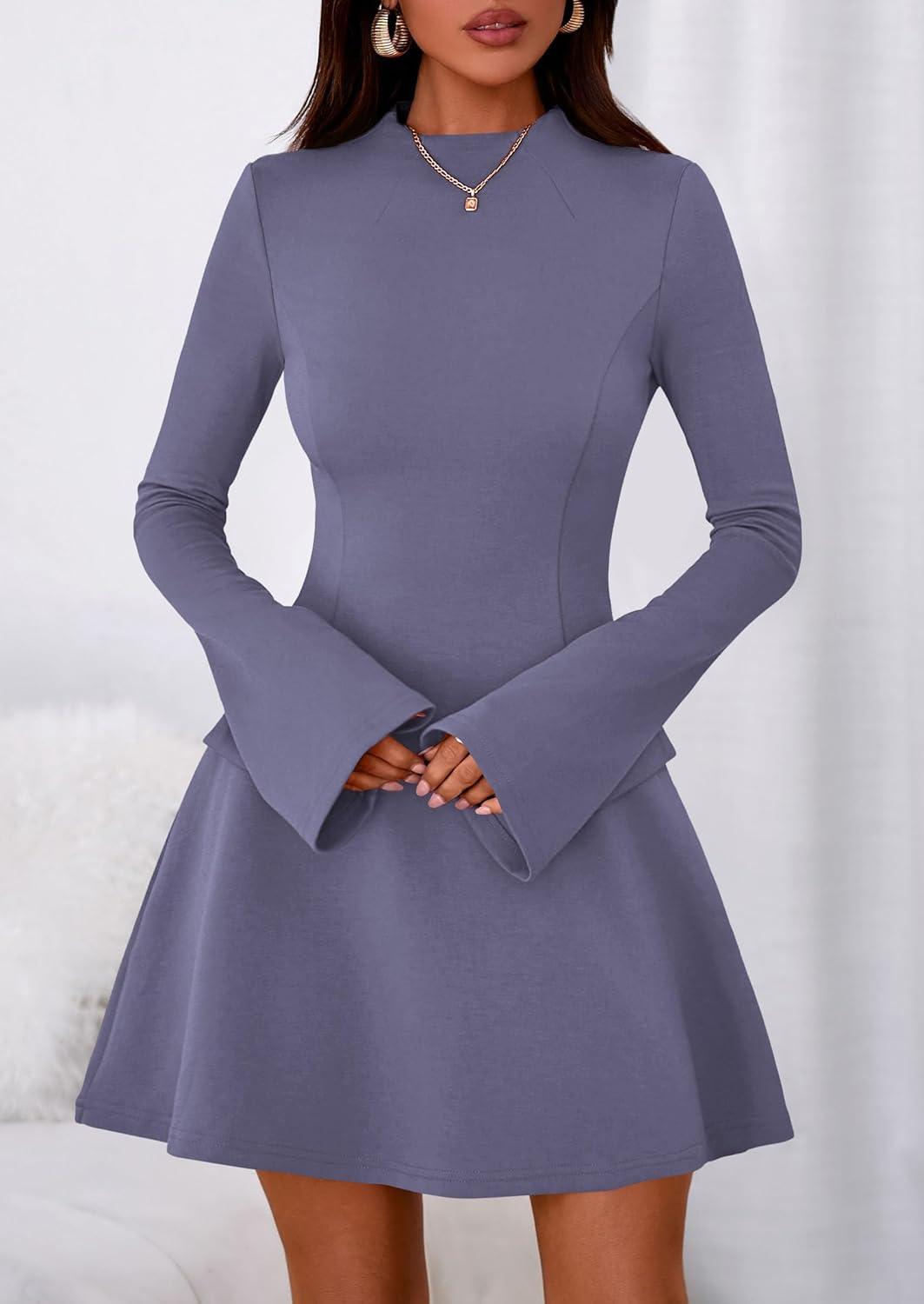 PRETTYGARDEN Women's Long Sleeve Mini Dress 2025 Fall Bodycon Mock Neck Elegant Business Work Party Short Dresses(Grey Blue)