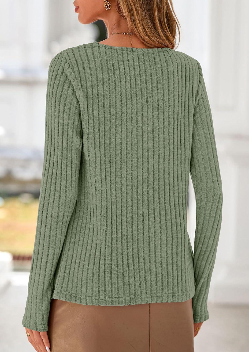 PRETTYGARDEN Women’s Long Sleeve Shirts 2025 Fall Fashion Clothes Casual Ribbed V Neck Loose Tunic Tops Lightweight Sweaters(Green)